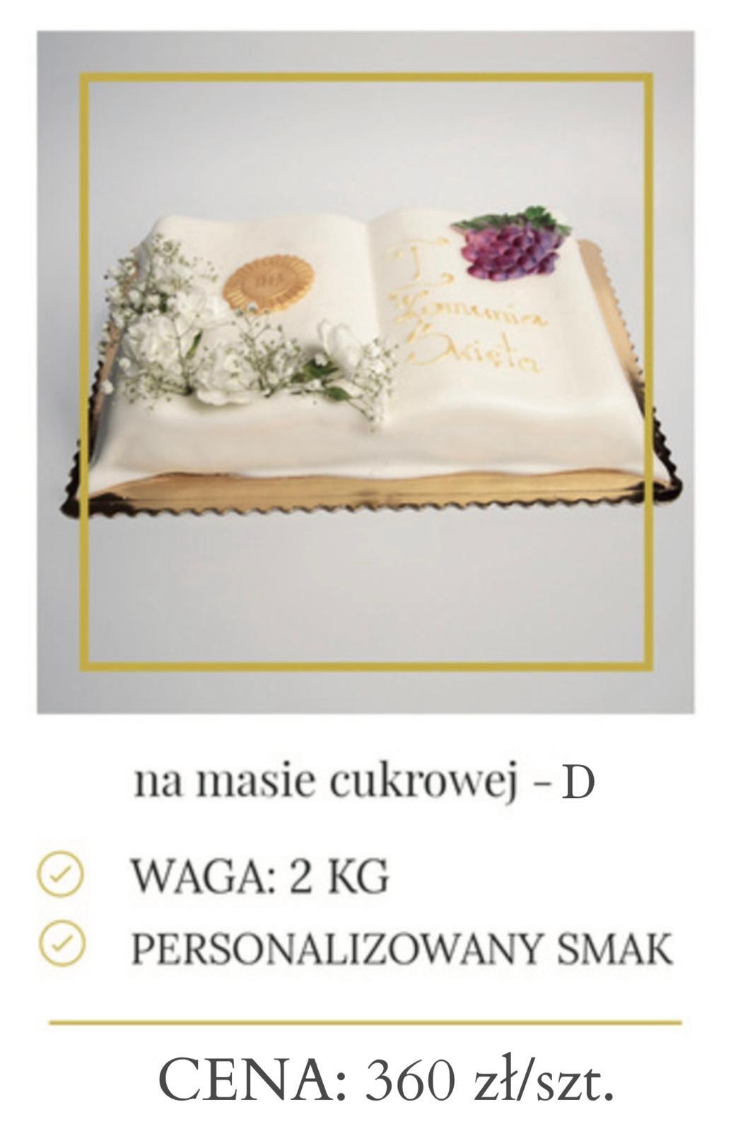 Do wyboru są różne rodzaje tortów – na masie cukrowej lub na bitej śmietanie, z możliwością personalizowania smaku i dowolnym nadrukiem. Można też wybrać kolor biszkoptu – jasny lub ciemny.