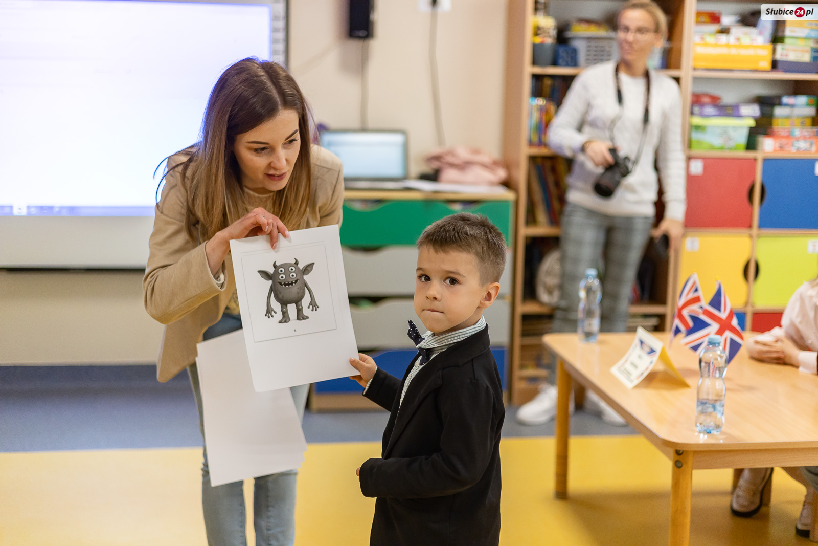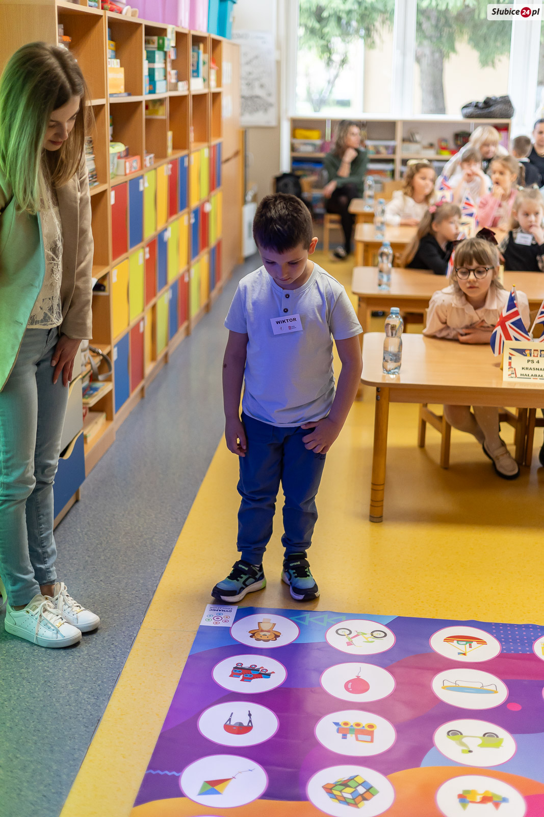 Przedszkolaki pracowały w dwuosobowych drużynach, choć części odpowiedzi udzielały samodzielnie, zdobywając punkty dla swojego zespołu. Zadania sprawdzały znajomość podstawowego słownictwa i rozumienie prostych poleceń. Dzieci nazywały owoce, określały kolory potworów na obrazkach, pokazywały wylosowane czynności oraz rozpoznawały przedmioty czy pogodę z obrazka. Musiały też nazwać zwierzę, którego odgłosy słyszały z głośników.