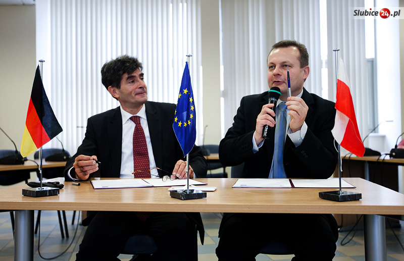 Wczoraj w Urzędzie Miejskim burmistrz Słubic Tomasz Ciszewicz oraz nadburmistrz Frankfurtu nad Odrą Martin Wilke podpisali porozumienie ws. polsko-niemieckiego przedszkola. Ma powstać placówka, w której będzie się uczyć 175 polskich i niemieckich dzieci.