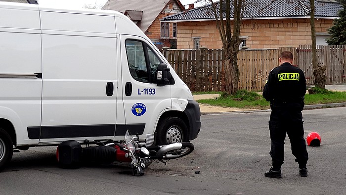 Do zdarzenia doszło dziś około godz. 10:30. Jak wynika ze wstępnych ustaleń policji, kierujący busem 36-letni mieszkaniec Rzepina nie ustąpił pierwszeństwa przejazdu jadącemu ul. Krótką motorowerzyście, który z impetem wjechał w bok samochodu. W wyniku uderzenia kierowca motoroweru złamał rękę i musiał zostać odwieziony do szpitala.