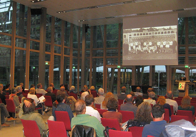 Dr Robert Gawkowski z Uniwersytetu Warszawskiego przybliżył historię żydowskich klubów piłkarskich okresu II RP i przypomniał, że pierwszego gola w historii reprezentacji Polski strzelił Józef Klotz, zawodnik Jutrzenki Kraków i Makabi Warszawa. Martin Brand z Berlina opowiedział o klubach piłkarskich w przedwojennym Lwowie, zaś członek zarządu województwa śląskiego Jerzy Gorzelik - o znakomitych piłkarza rodem ze Śląska, m.in. Erneście Wilimowskim, czy Gerardzie Wodarzu.