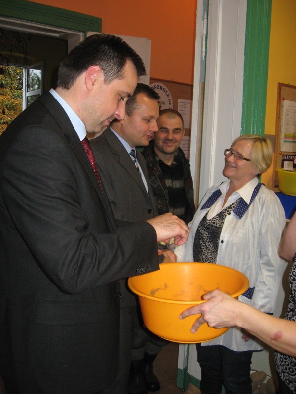 Impreza co roku angażuje nie tylko przedszkolaków, ale również ich rodziców. Wspólnie z dziećmi przygotowują ziemniaczane ludki, którymi następnie wspólnie dekorują przedszkole. "Dzień Ziemniaczanego Ludka" odwiedzili równiez włodarze miasta - burmistrz Tomasz Ciszewicz oraz jego zastępca Piotr Łuczyński.