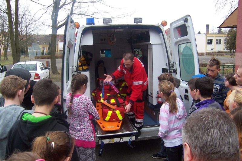 Podczas spotkania uczniowie ośrodka zostali podzielieni na dwie grupy wiekowe. Najłmodsi mogli zobaczyć karetkę pogotowia od środka i zapoznać się ze sprzętem medycznym wykorzystywanym do ratowania zdrowia i życia.