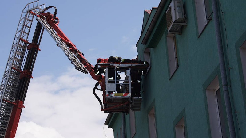 Na miejsce przybyły jednostki ratunkowe, które przystąpiły do ewakuacji pracowników budynku. Pożar wybuchł na ostatniej kondygnacji. Na miejsce zadysponowano wóz strażacki z wysięgnikiem, który pomógł w wydostaniu się rannej osoby z budynku.