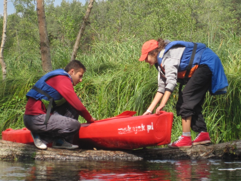 Jak rzadko bywa, w spływie wzięła udział cała klasa, bez wyjątku! Mimo obaw o pogodę (w poprzednich dniach mocno się ochłodziło i co chwilę padał deszcz) termin spływu nie został przełożony – i całe szczęście! Już poranek przywitał wszystkich błękitnym niebem i mocnym słońcem. Przed wypłynięciem z Sądowa, miejsca startu, uczniowie przeszli krótkie szkolenie dotyczące zachowania się na wodzie i „obsługi” kajaków.