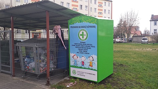 W międzyczasie nawiązano współpracę z nowym podmiotem, Fundacją Pomocy Dzieciom Radość Serca, która chętnie zgodziła się na postawienie nowych, estetycznych kontenerów. Pojemniki mają zielony kolor i są opatrzone kolorowym rysunkiem dziecięcych postaci oraz hasłem "Pomagajmy razem".