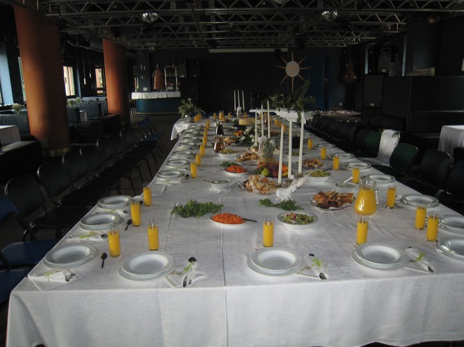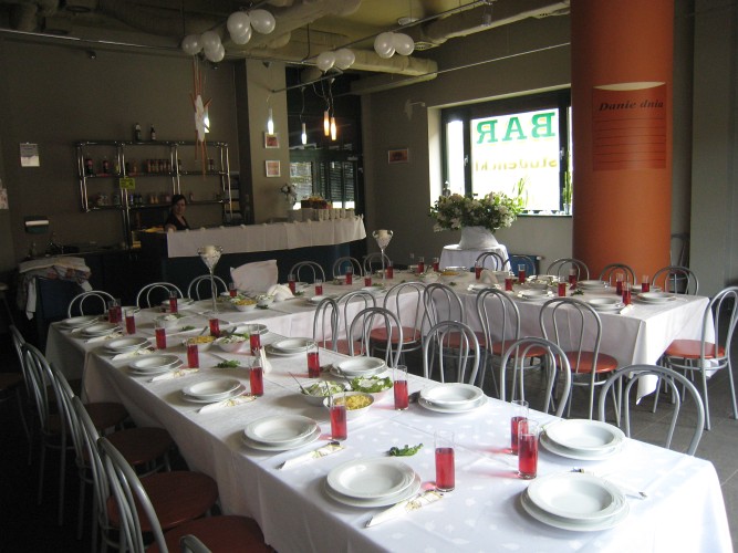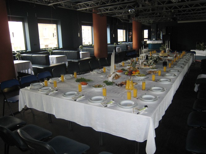 Potrafimy zorganizować każde przyjęcie tak, by ten dzień był dla Was niezapomniany. Dysponujemy trzema klimatyzowanymi salami: główną z nagłośnieniem i efektami świetlnymi, która mieści do 200 osób oraz dwiema mniejszymi salami z miejscami do 50 osób.