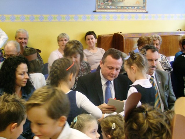 Oficjalną część spotkania otworzyła obecna dyrektor Anna Szurko witając zgromadzonych. Następnie burmistrz złożył wszystkim gościom gratulacje oraz życzenia wszelkiej pomyślności, wręczając przy tym prezent dla przedszkolaków. Głos zabrał również Piotr Kiedrowicz przekazując na ręce dyrektor upominki dla pracowników przedszkola. Bardzo dziękujemy za ten piękny gest.