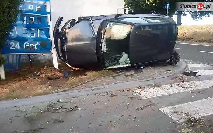 Przed uderzeniem w tablicę, pojazd uszkodził jeszcze inne auta, co widać na załączonych zdjęciach. Wg relacji świadków, całe zdarzenie wyglądało bardzo groźnie, niemniej jednak nikomu nic się nie stało.