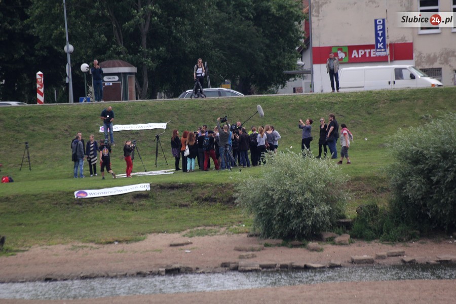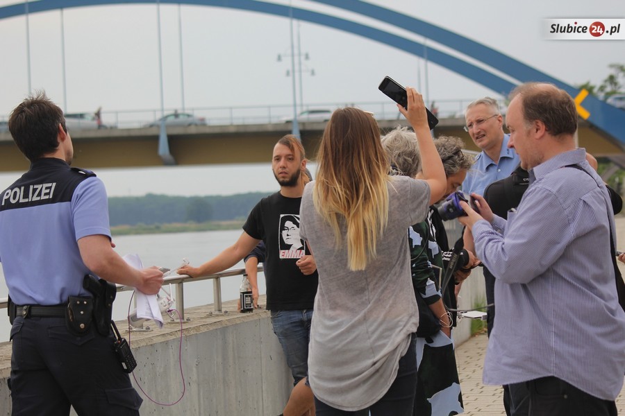 Po polskiej stronie przesyłkę odebrały dwie kobiety, w tym Agnieszka Olszewska z Women on Waves. Oświadczyła, że przesyłka jest adresowana do niej i do jej koleżanki. Oprócz nich na brzegu Odry zgromadziła się grupa kilkunastu osób z transparentami popierającymi akcję.