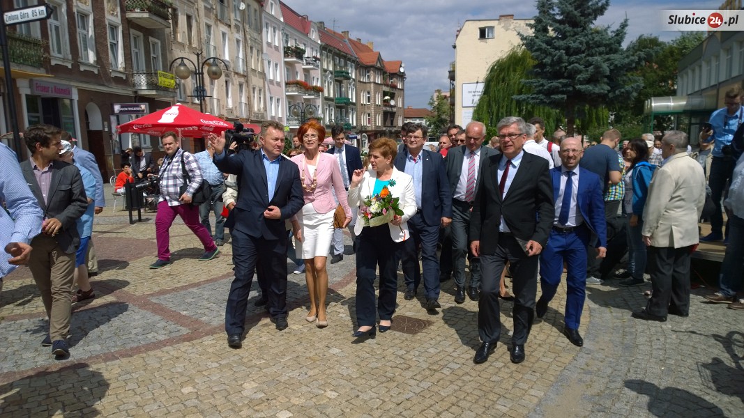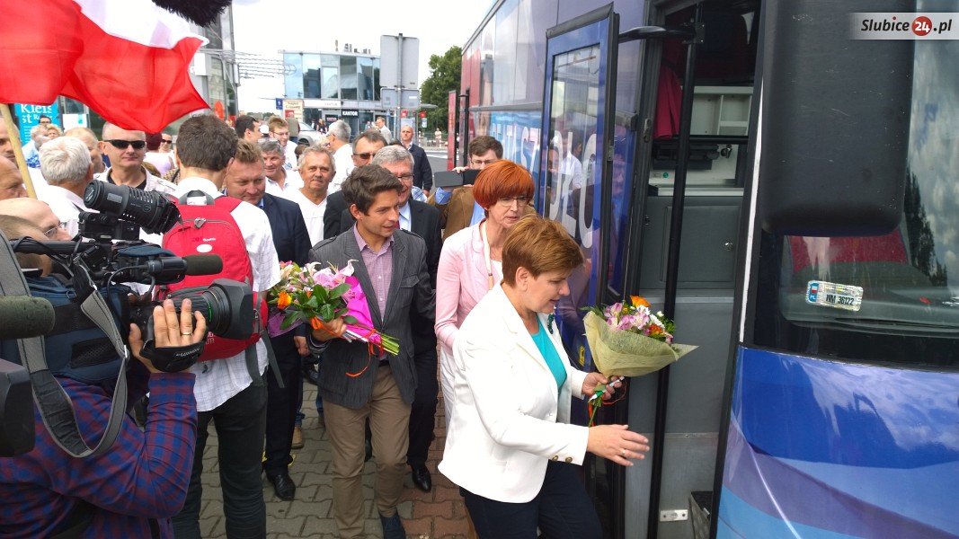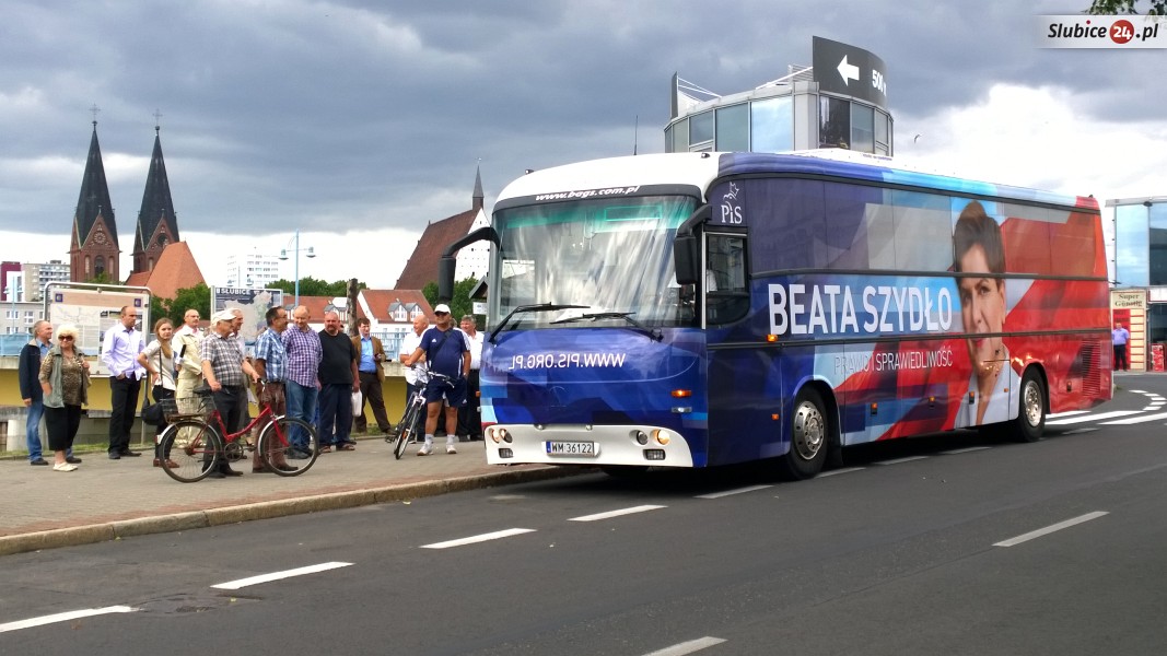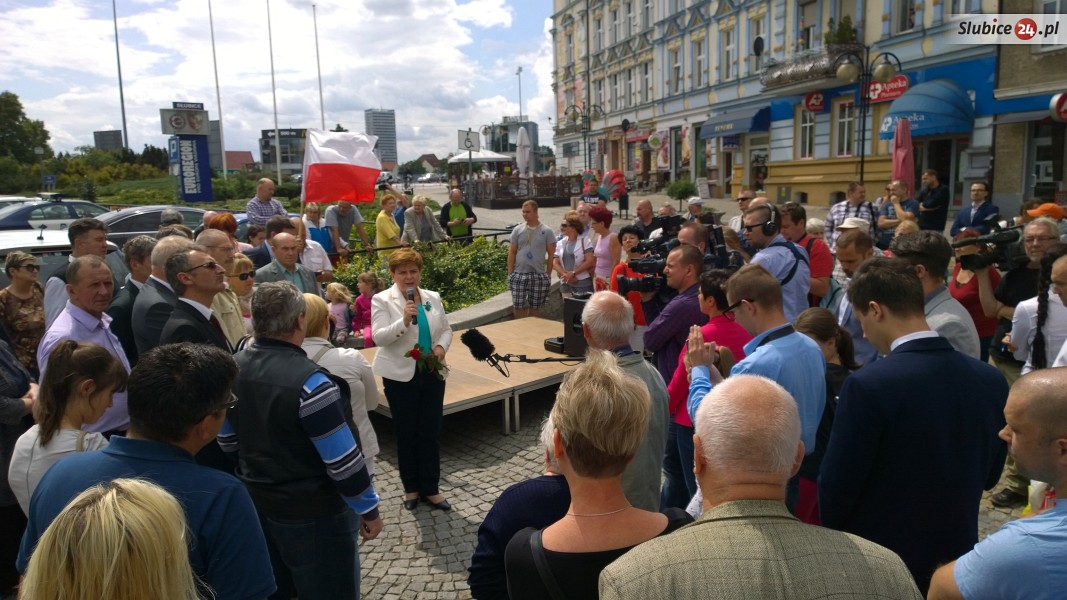 W środę Słubice odwiedziła Beata Szydło, kandydatka Prawa i Sprawiedliwości na premiera. Autobus z jej najbliższymi współpracownikami, zwany popularnie "Szydłobusem", pojawił się w naszym mieście chwilę przed godz. 13. Beata Szydło najpierw udała się pod Szpital Powiatowy, gdzie rozmawiała z dziennikarzami, poruszając sprawy m.in. służby zdrowia. Po briefingu był czas na spotkanie z mieszkańcami, które odbyło się na deptaku przed biblioteką i moście granicznym.