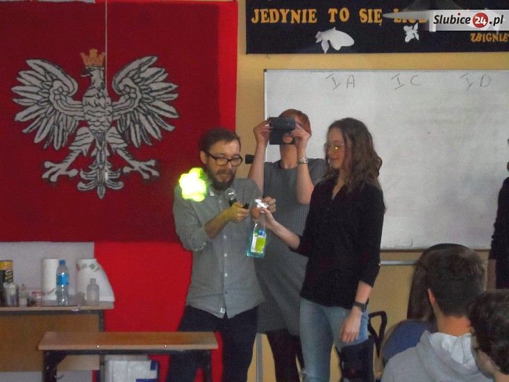 W zajęciach z udziałem naukowców z Torunia - Dominiką Panek oraz Łukaszem Spornym - wzięło udział aż 75 osób ze słubickiego "Ogólniaka". Ponadto po raz pierwszy zaproszono do wspólnego eksperymentowania uczniów z Gimnazjum nr 2 w Słubicach. Chętnych było tak dużo, że uczestników podzielono na 4 grupy. Na każdą z nich czekały 2 godziny ciekawych zajęć.