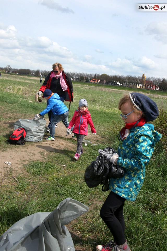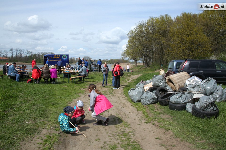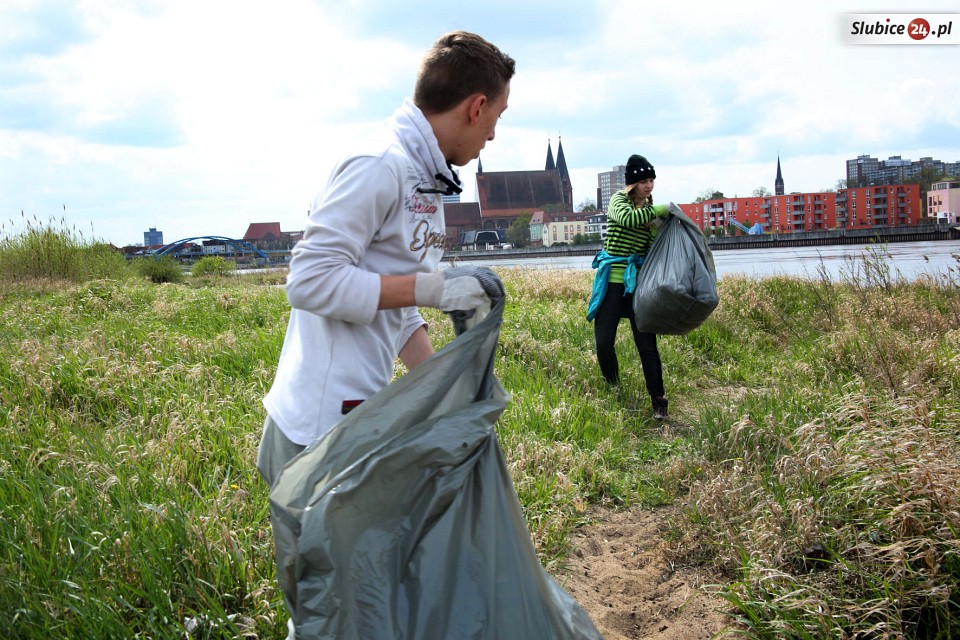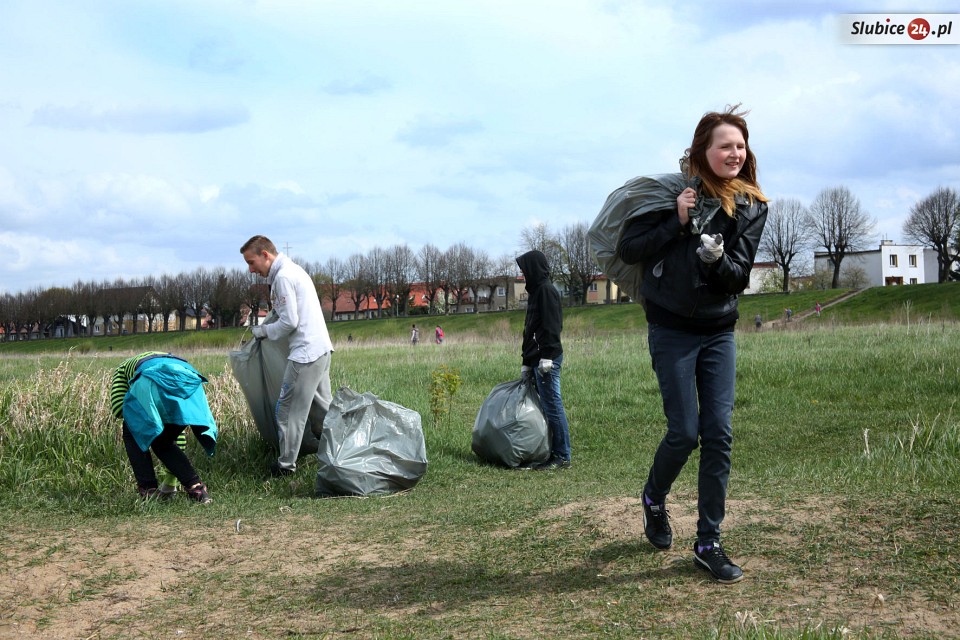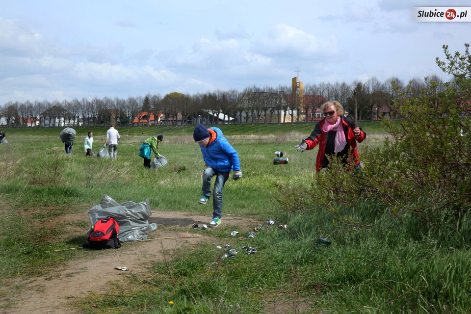 23 kwietnia równo w południe grupka kilkudziesięciu mieszkańców Słubic, w tym sporo dzieci i młodzieży, rozpoczęła sprzątanie zalegających śmieci. Pracy było mnóstwo, bo teren był naprawdę zaniedbany. Wśród co ciekawszych "okazów" trafiły się m.in. opony, resztki łóżka, części komputerowe. Wszystko powędrowało do worków przygotowanych przez Przedsiębiorstwo Usług Komunalnych.