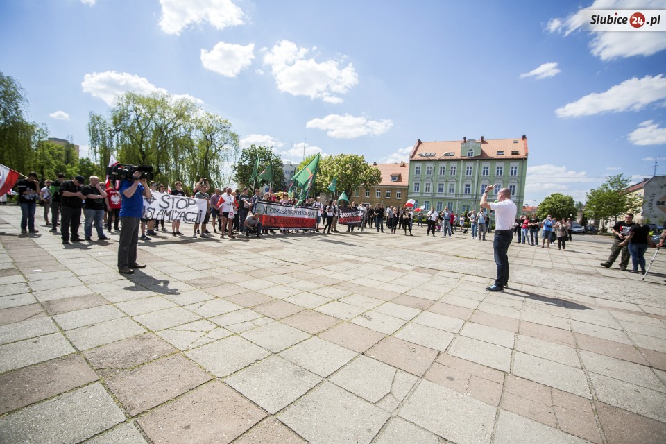 Grupa około 200 osób zebrała się na placu Bohaterów, następnie przeszła ulicami miasta w stronę deptaku przy moście granicznym. Po drodze uczestnicy marszu skandowali hasła związane z przekładanymi przez nich postulatami m.in. "Polska wolna od islamu", "Polska dla Polaków", "Bóg, honor i ojczyzna", "precz z Unią Europejską".