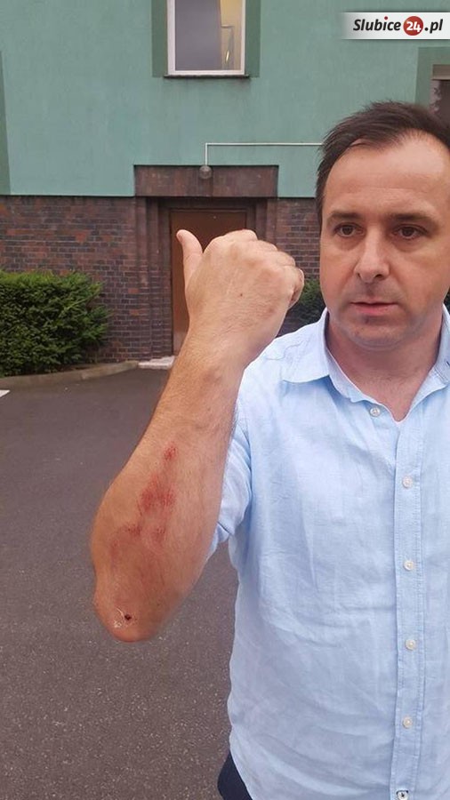 Weszli do gabinetu starosty, w środku doszło do przepychanek i utarczek słownych. Piotr Łuczyński został wyprowadzony przez ochronę. W zamieszaniu została ranna Krystyna Skubisz, która spadła ze schodów i trafiła do szpitala na SOR w Słubicach. Rozmawialiśmy z synem radnej K. Skubisz. Powiedział, że jego mama ma poważne obrażenia głowy, trwają specjalistyczne badania.