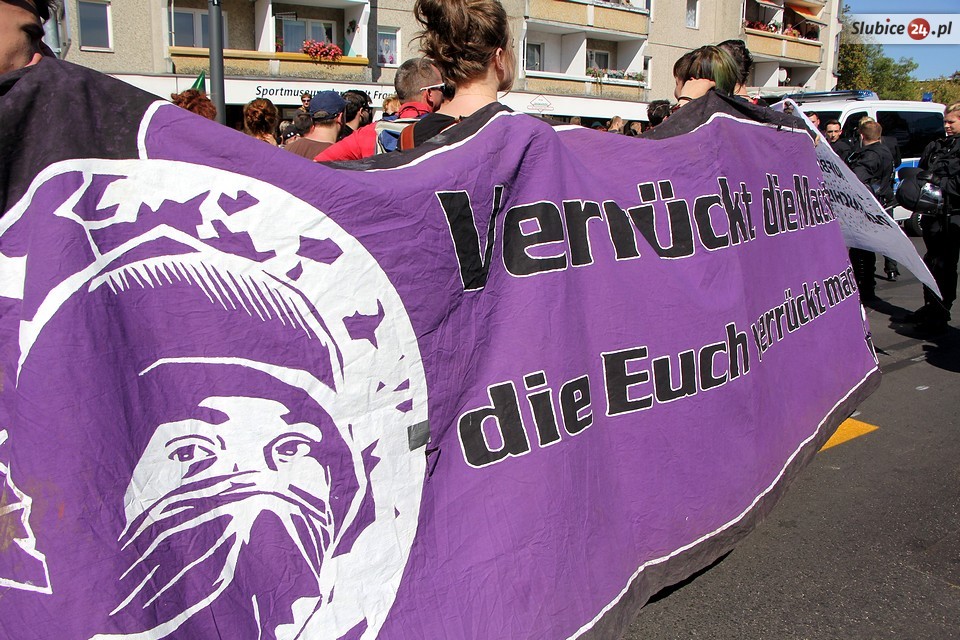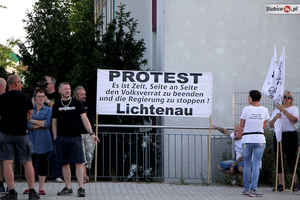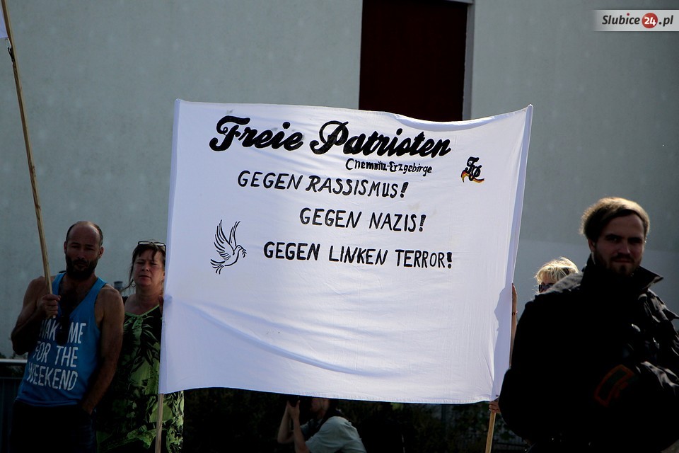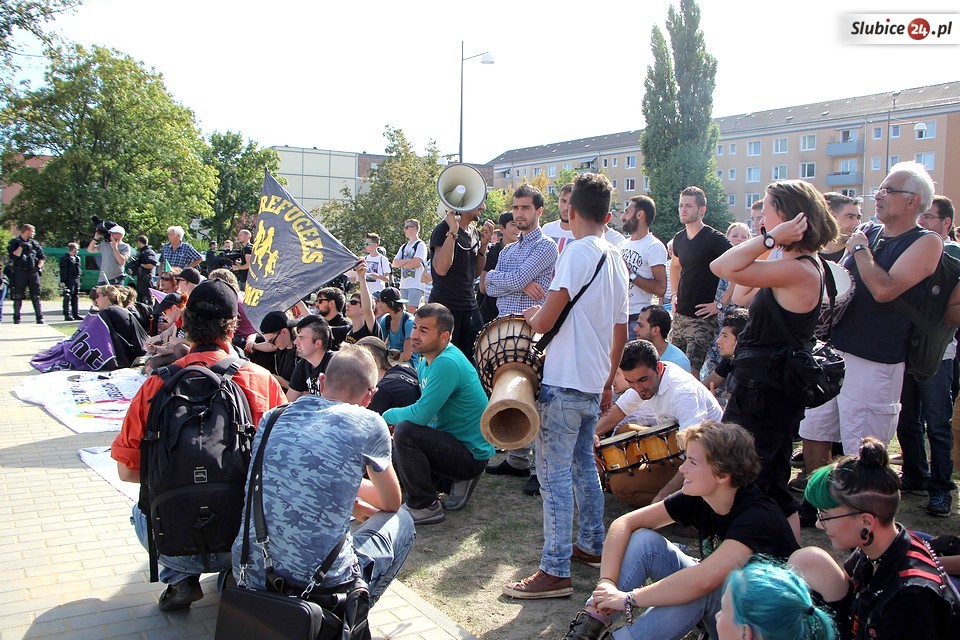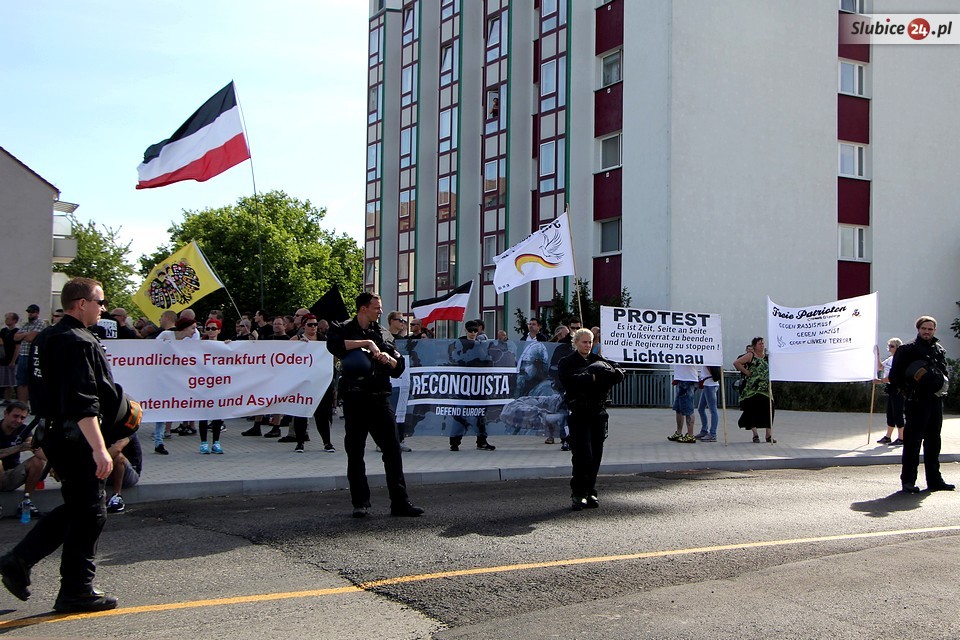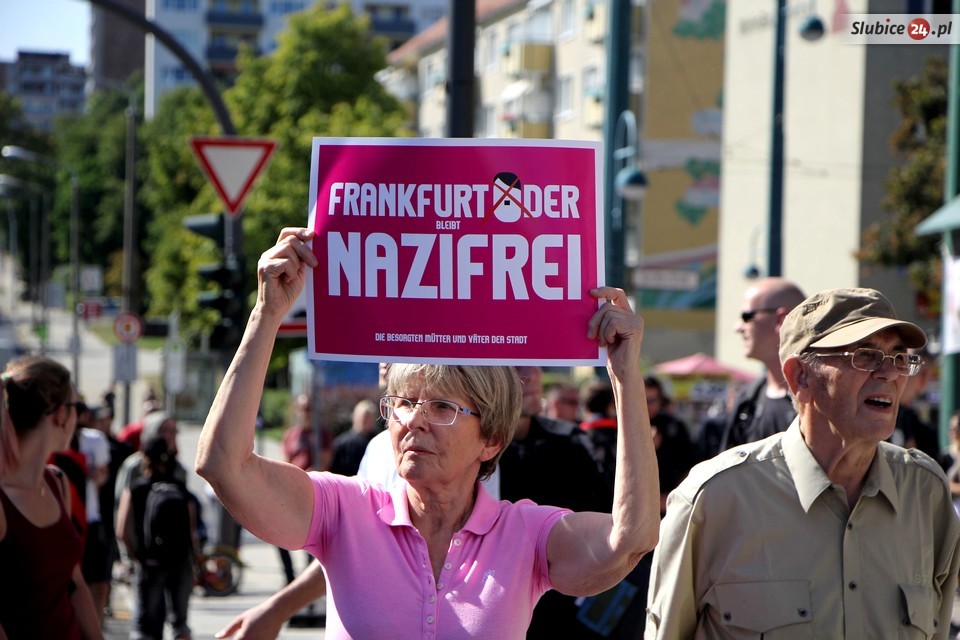 Godzinę później w tym samym miejscu rozpoczęła się demonstracja przeciwników imigrantów pod hasłem zatrzymania napływu azylantów (Asylflut stoppen). Za koordynację protestu odpowiadała organizacja "Frankfurt (Oder) wehrt sich" (Frankfurt broni się). Protestujący wyrażali swoje zaniepokojenie obecną sytuacją w Niemczech związaną z obecnością imigrantów. Krzyczeli, że nie chcą tworzenia kolejnych ośrodków imigranckich i przyjmowania obcych, którzy nie potrafią integrować się z niemieckim społeczeństwem.