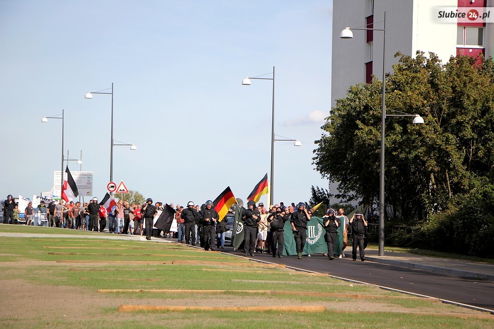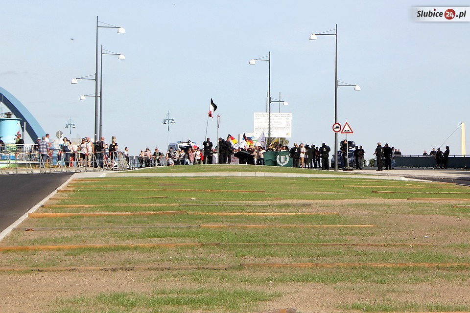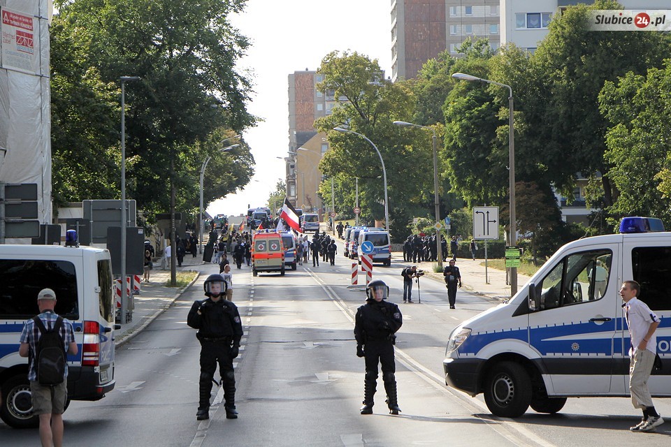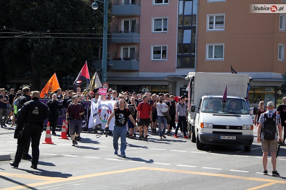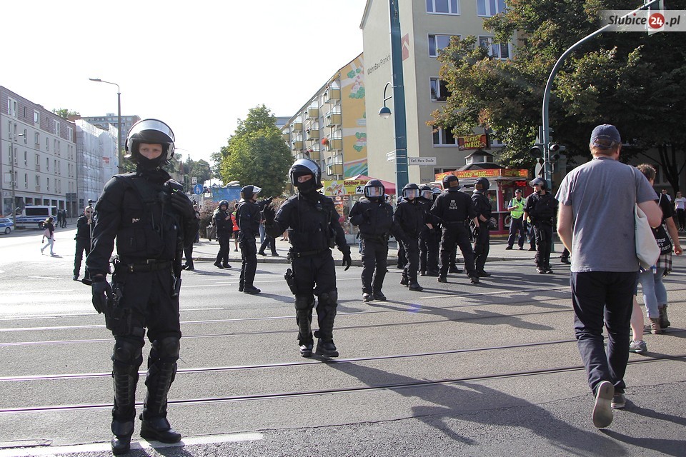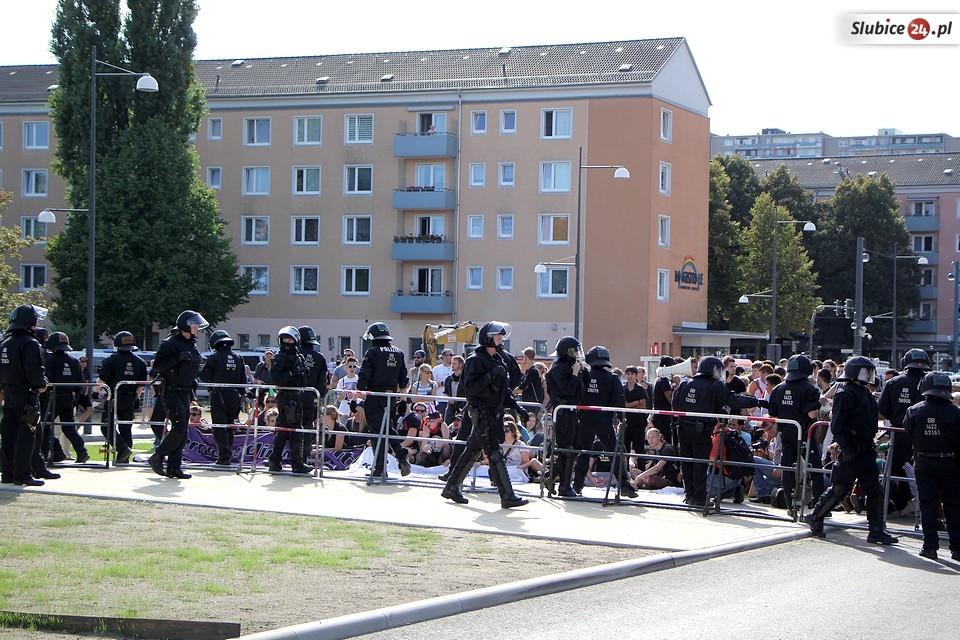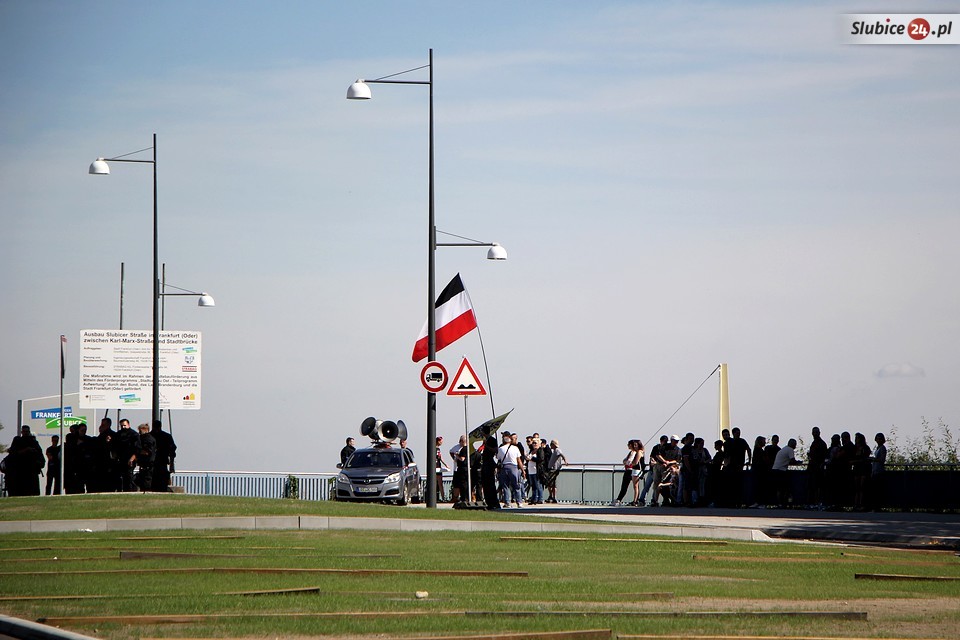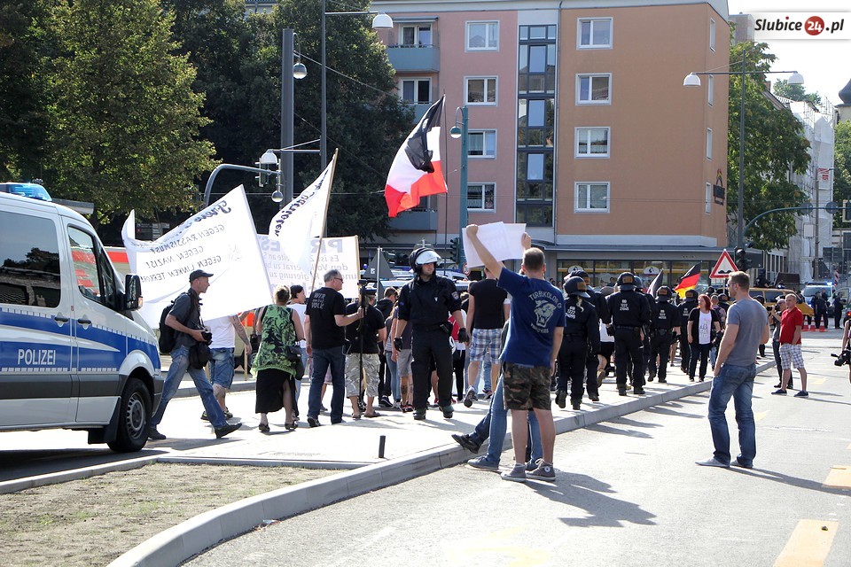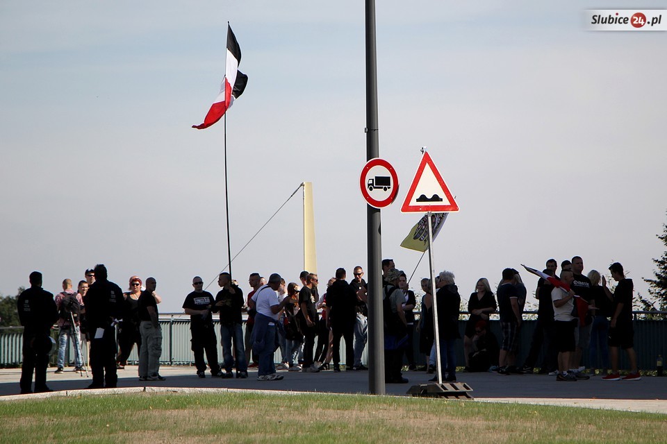 Rejon manifestacji zabezpieczała polska i niemiecka policja. Kordon mundurowych rozdzielał obie grupy, które wznosiły w stosunku do siebie wrogie okrzyki, gesty i gwizdy. W pogotowiu czuwało kilkanaście radiowozów. Atmosfera była napięta, nie doszło jednak do bezpośredniego starcia i przepychanek. Łącznie w obu manifestacjach wzięło udział około kilkaset osób.