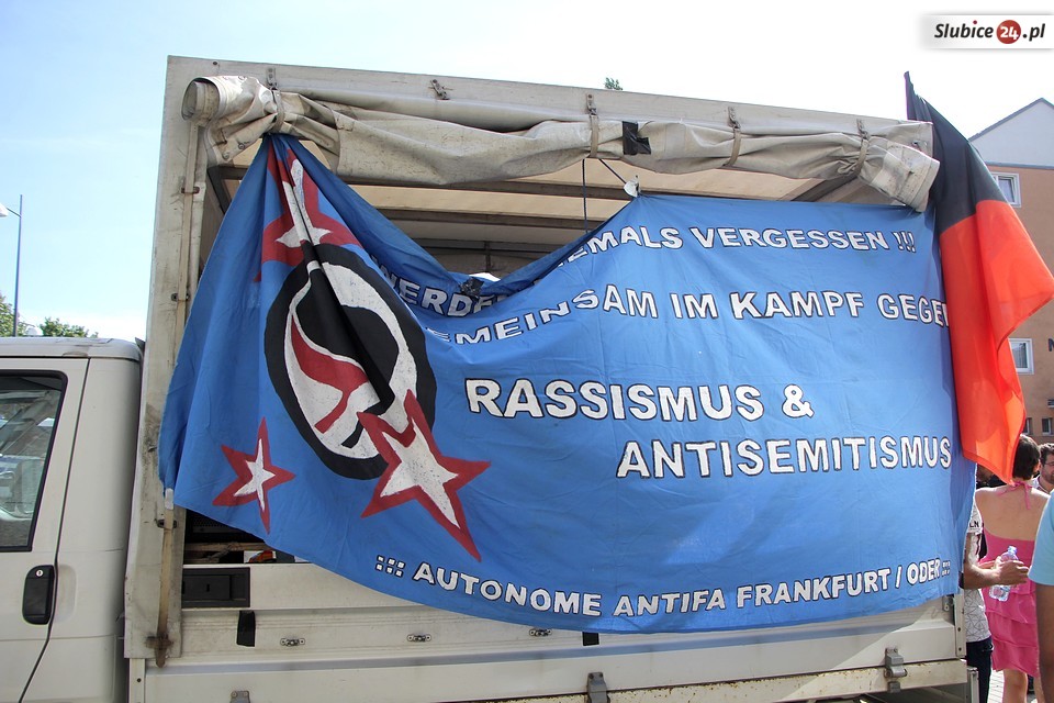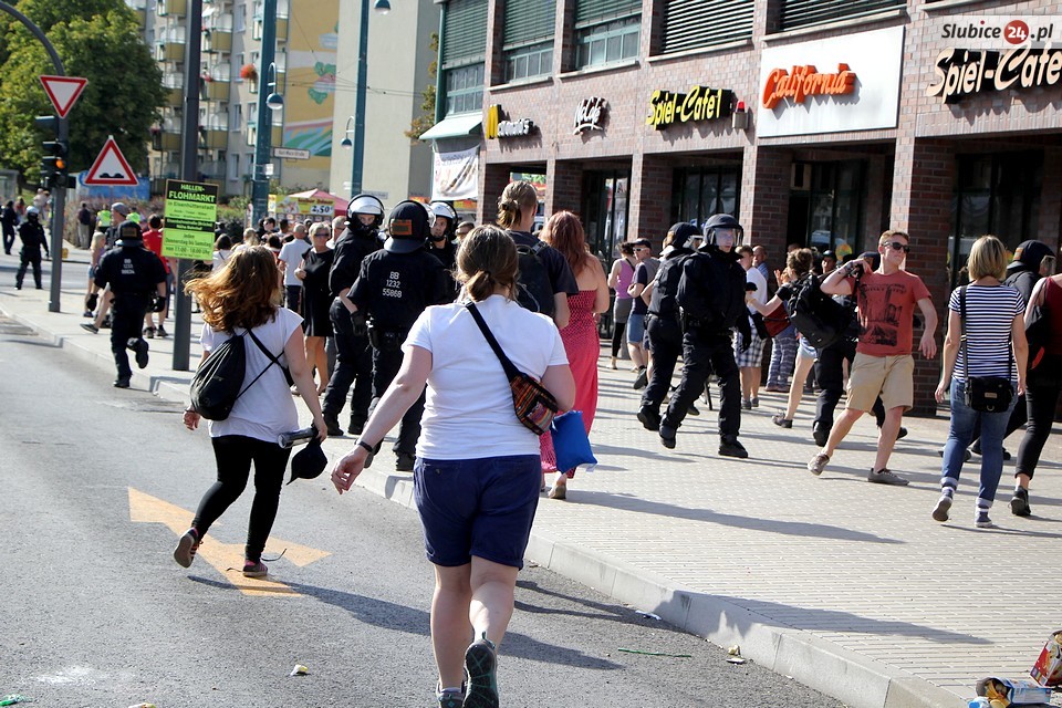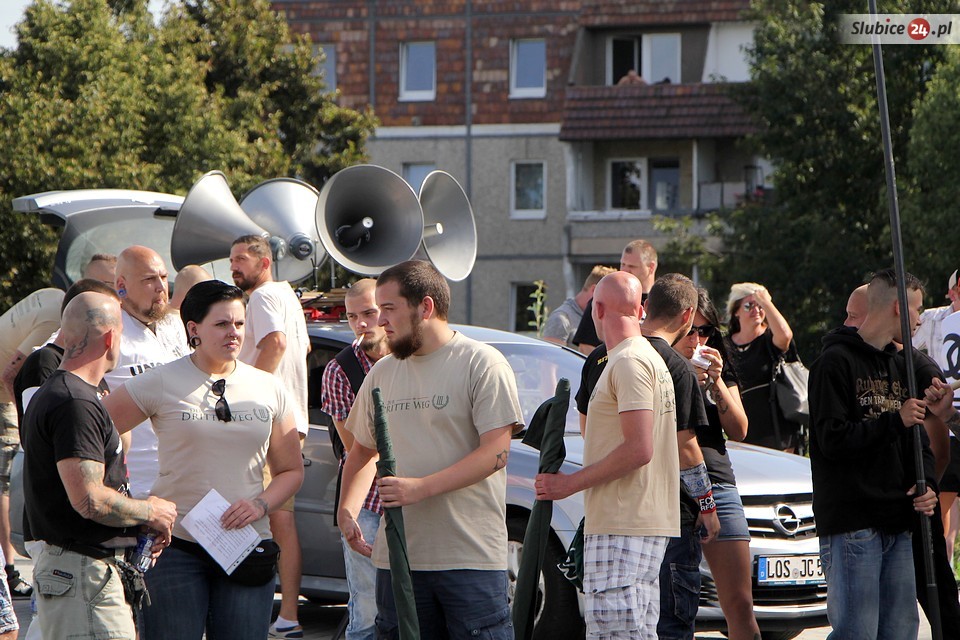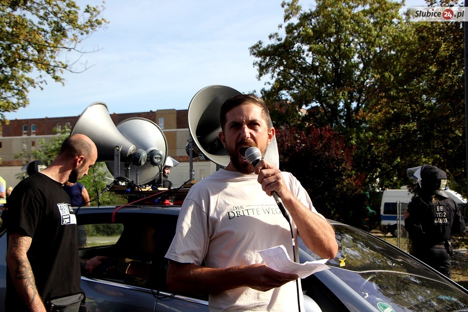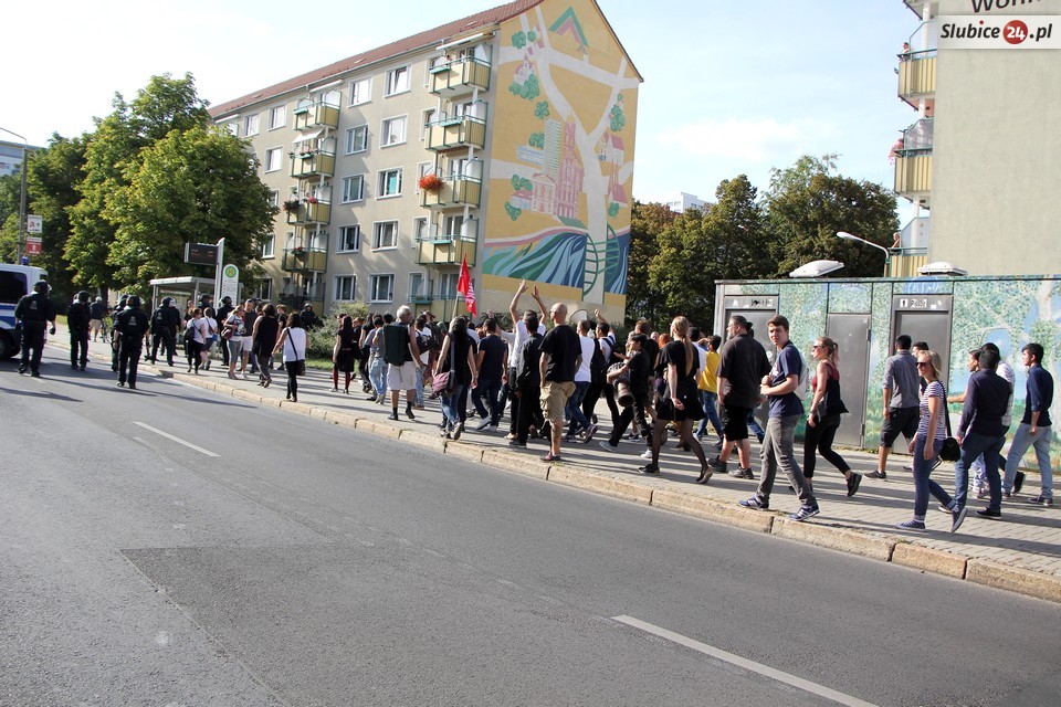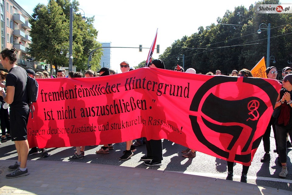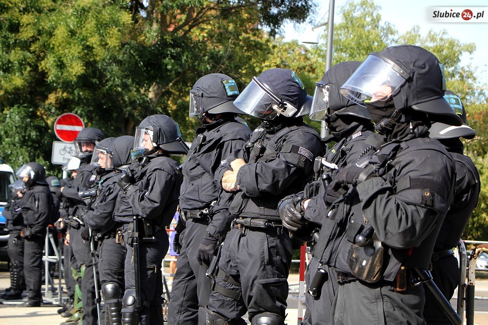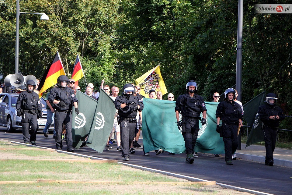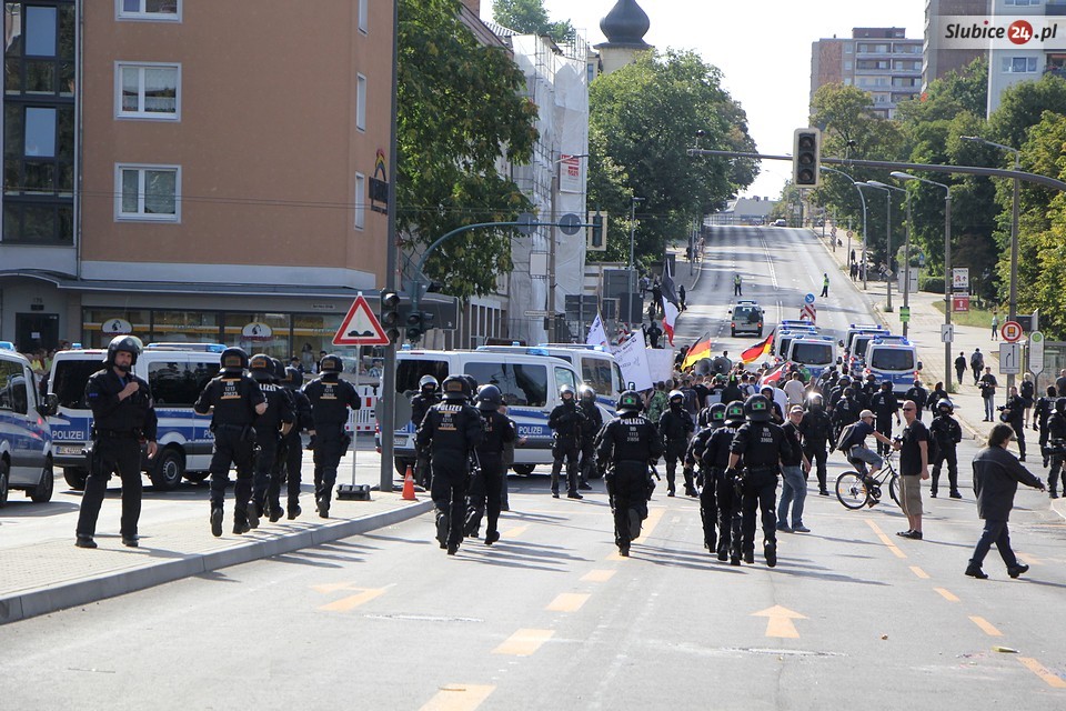 Rejon manifestacji zabezpieczała polska i niemiecka policja. Kordon mundurowych rozdzielał obie grupy, które wznosiły w stosunku do siebie wrogie okrzyki, gesty i gwizdy. W pogotowiu czuwało kilkanaście radiowozów. Atmosfera była napięta, nie doszło jednak do bezpośredniego starcia i przepychanek. Łącznie w obu manifestacjach wzięło udział około kilkaset osób.