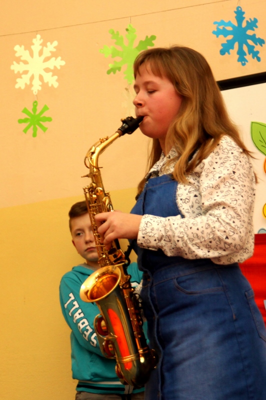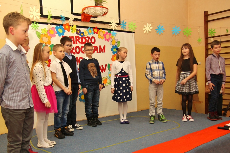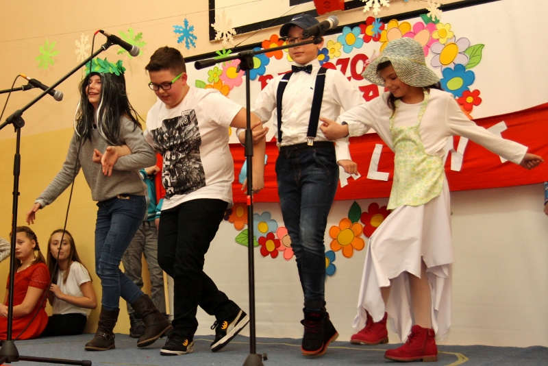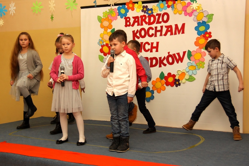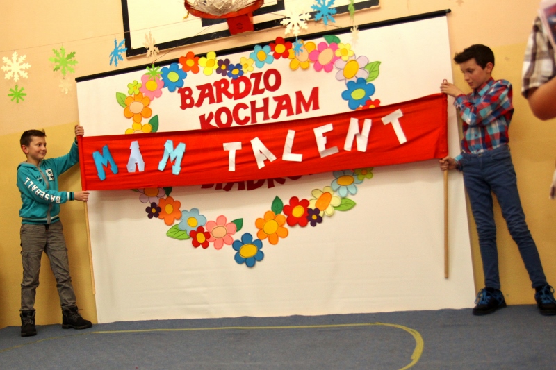 Także starsi uczniowie mieli pole do popisu. Piątoklasiści zorganizowali własną wersję castingu do programu „Mam talent”. W konkursie wystąpili między innymi saksofonistka, gitarzysta oraz rysownik. Aplauz publiczności wzbudził występ zespołu BIBER TEAM. Zaraz po nim na scenie pojawił się kabaret DRUCIAKI, który zaprezentował bajkę o Jasiu i Małgosi z repertuaru słynnego kabaretu Potem. Wszyscy uczestnicy byli oceniani przez jury złożone z babć i dziadków.