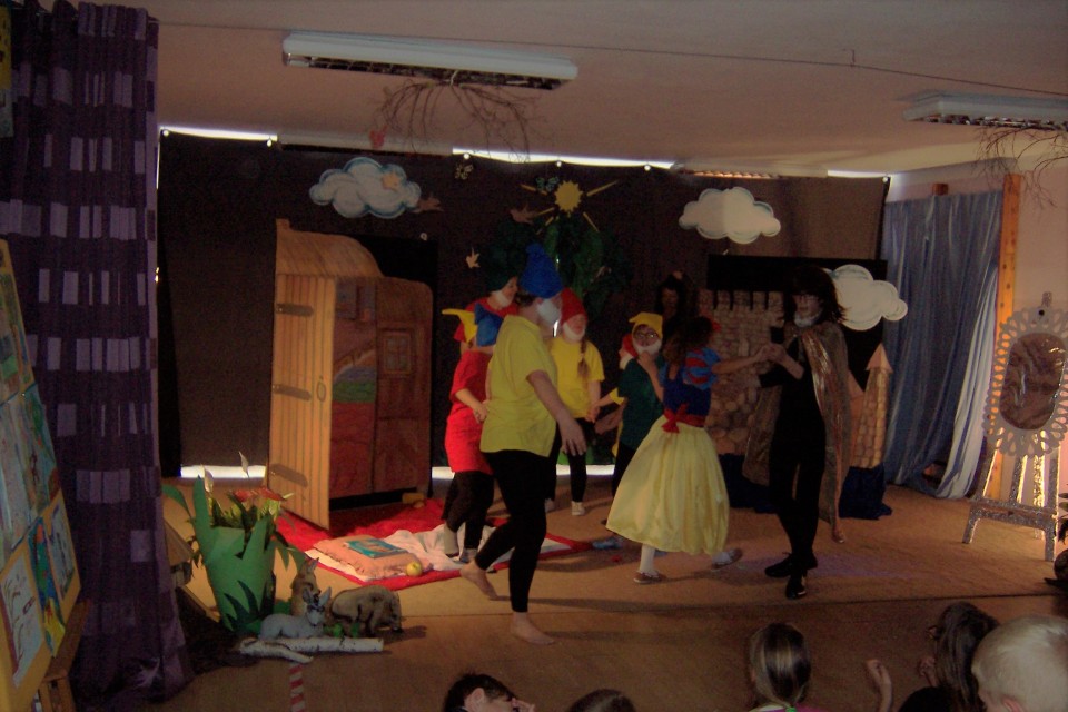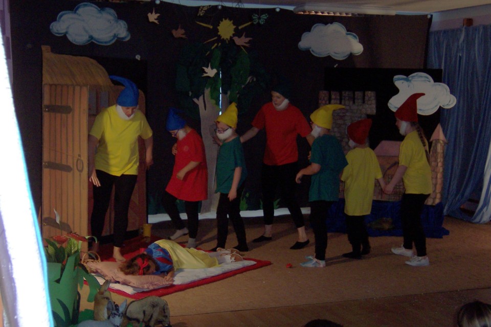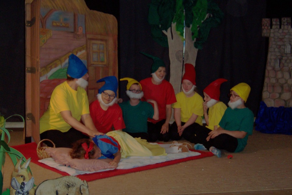 Uroczystość rozpoczęła się od inscenizacji baśni pt. „Królewna Śnieżka i siedmiu krasnoludków”, którą przygotowało Szkolne Koło Teatralne działające w ośrodku. Siedmiu krasnoludków z całych sił starało się obudzić śpiącą królewnę która zjadła zatrute jabłko. Udało się to dopiero dzielnemu księciu.