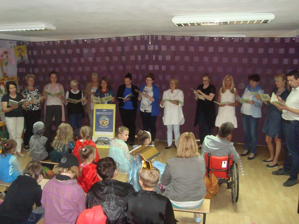 Po przedstawieniu do wspólnej zabawy włączyli się goście z innych słubickich placówek: przedszkoli: „Pinokio”, „Jarzębinka”, „Miś Uszatek”, ze Szkół Podstawowych nr 1 i 2 oraz ze Społecznej Niepublicznej Ogólnokształcącej Szkoły Muzycznej. Dzieci przebrane za różne postacie z bajek, baśni i lektur szkolnych wystąpiły wspólne w paradzie postaci literackich. Widzowie mieli za zadanie odgadnąć tytuł książki, z której pochodził przebrany bohater. Troje dzieci, które trafnie rozpoznały postacie otrzymało nagrody, a pozostali uczestnicy słodycze. Postacie z książek były również bohaterami wystawy pt. „Mój ulubiony bohater literacki”, którą przygotowali podopieczni ośrodka.