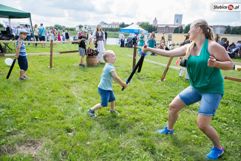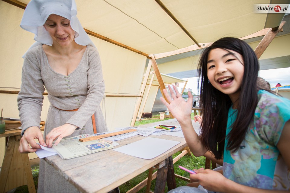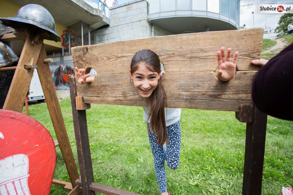 Na dzieci czekały m.in. dmuchańce, wodne kule, trampoliny i zjeżdżalnie. Dużym powodzeniem cieszyły się stoły do kultowego cymbergaja. Na rzemieślniczych stoiskach można było podejrzeć jak dawniej robiło się ubrania, czerpało papier, wyrabiało stalowe przedmioty, piekło podpłomyki czy lepiło garnki. Nie brakowało chętnych do przymierzenia prawdziwej zbroi czy walki na miecze. Niektórzy nawet dali zakuć się w... dyby.