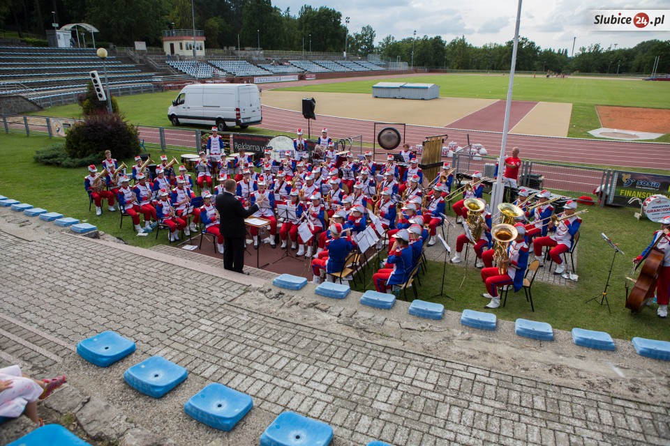 Artyści przyjechali do na naszego miasta na przygotowania do Światowego Konkursu Muzycznego, który już niebawem odbędzie się w Holandii). Co ciekawe są pierwszym polskim zespołem od ponad 30 lat, który został do niego zakwalifikowany. Na obiektach Słubickiego Ośrodka Sportu i Rekreacji doskonalili swoje umięjętności i postanowili sprawdzić je w praktyce. Stąd pomysł na otwarty koncert dla mieszkańców Słubic, a wcześniej granie dla uczestników biegu.