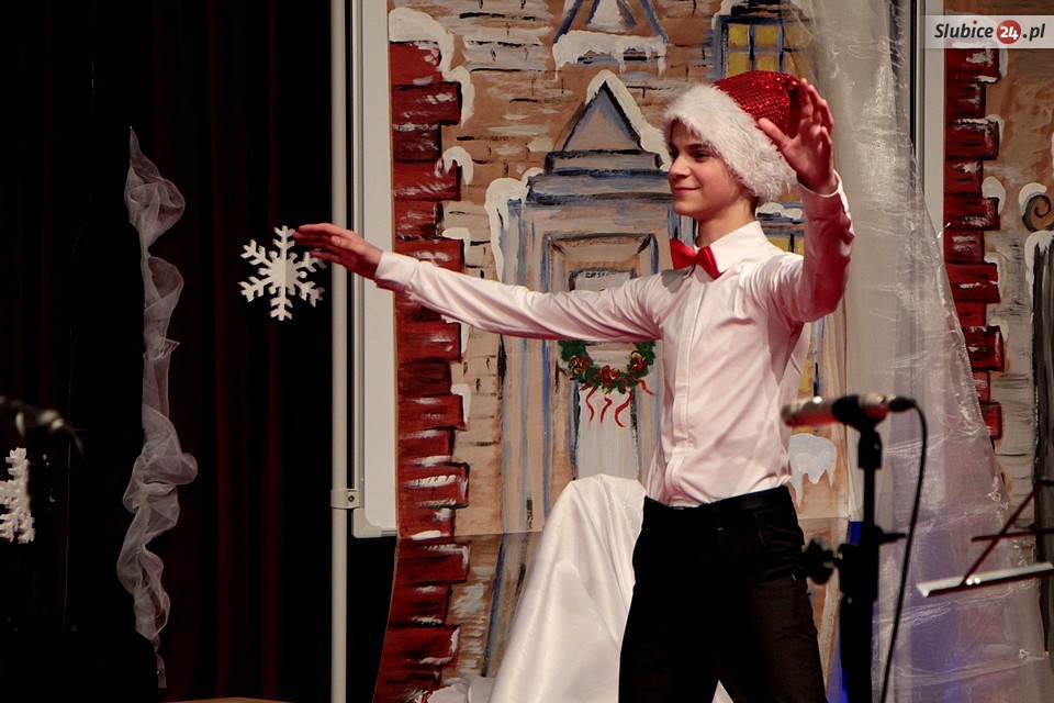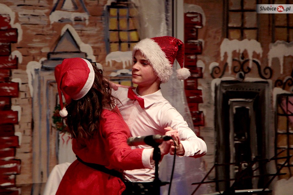 Dwoje uczniów, Pola i Wojtek, zatańczyło specjalnie na tę okazję przygotowany taniec do znanych utworów: „Jingle Bell Rock” i „All I want for Christmas is you”.