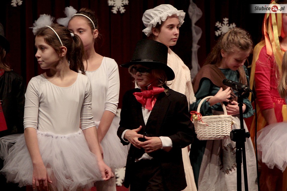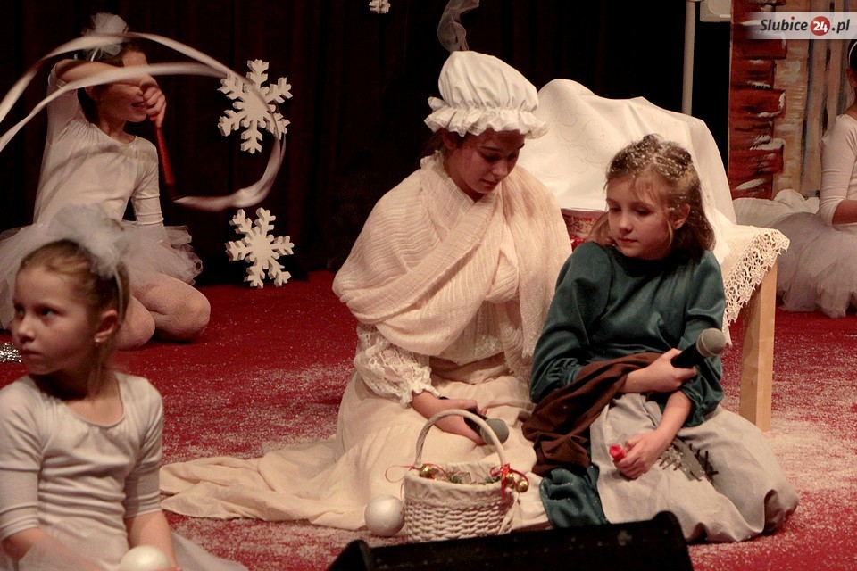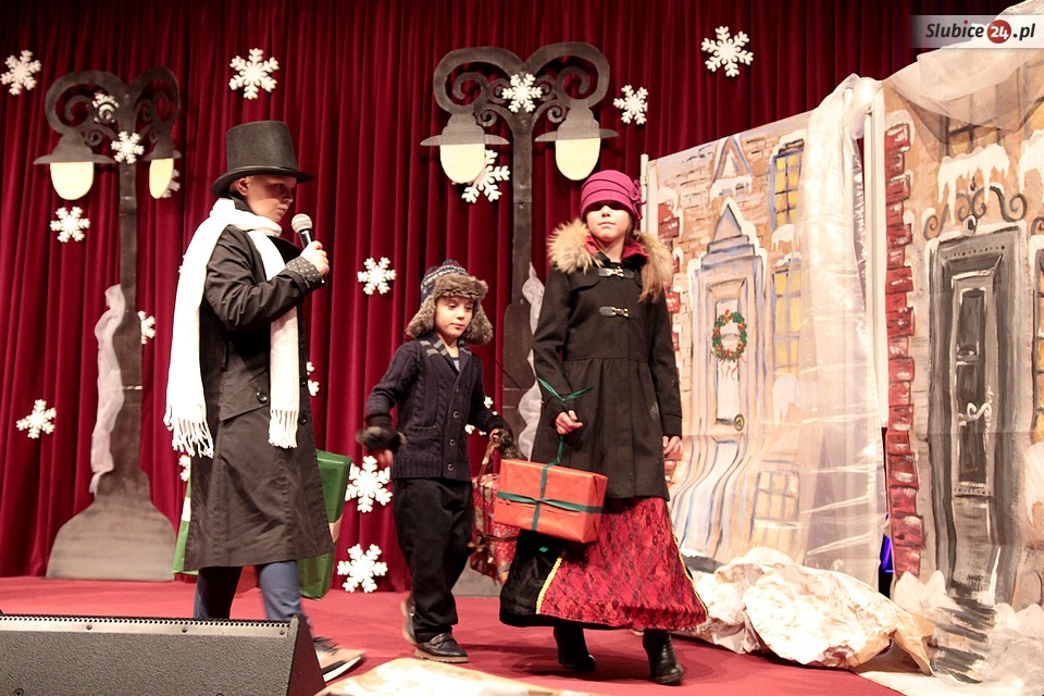 A potem scena zamieniła się w ulicę z XIX w., na której zapałki sprzedawała pewna mała dziewczynka. - Była mała dziewczynka z dalekiego przedmieścia i choć biedna, to pełna nadziei. Sprzedawała zapałki, ale nikt kupić ich nie chciał. Wyciągała zmarznięte dłonie… - opowiadał Tymek Piotrowski w roli narratora. – A ludzie szli, a ludzie szli do swoich ciepłych domów i żaden z nich, żaden z nich tej małej nie dopomógł – wtórował mu chór (złożony z uczniów 7 klasy).