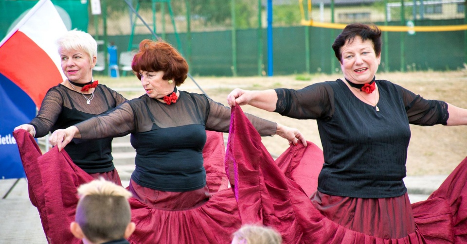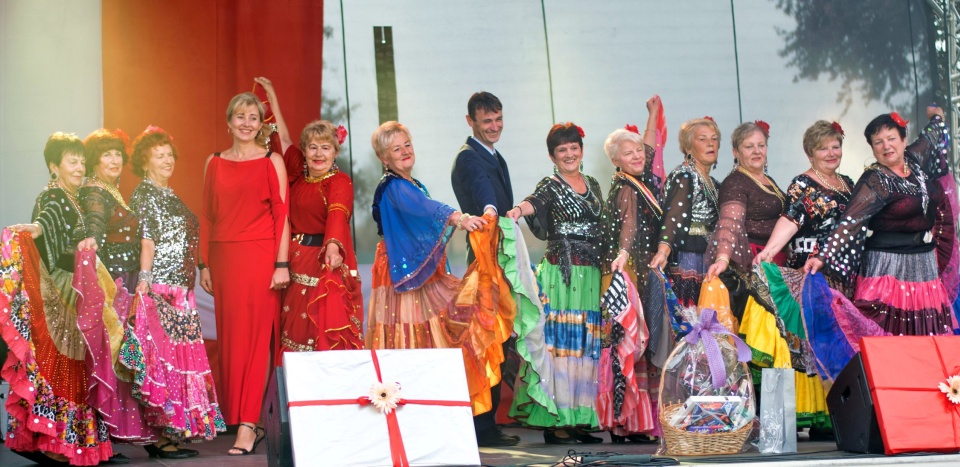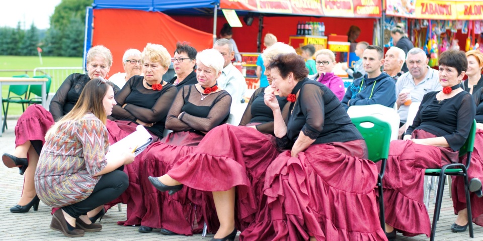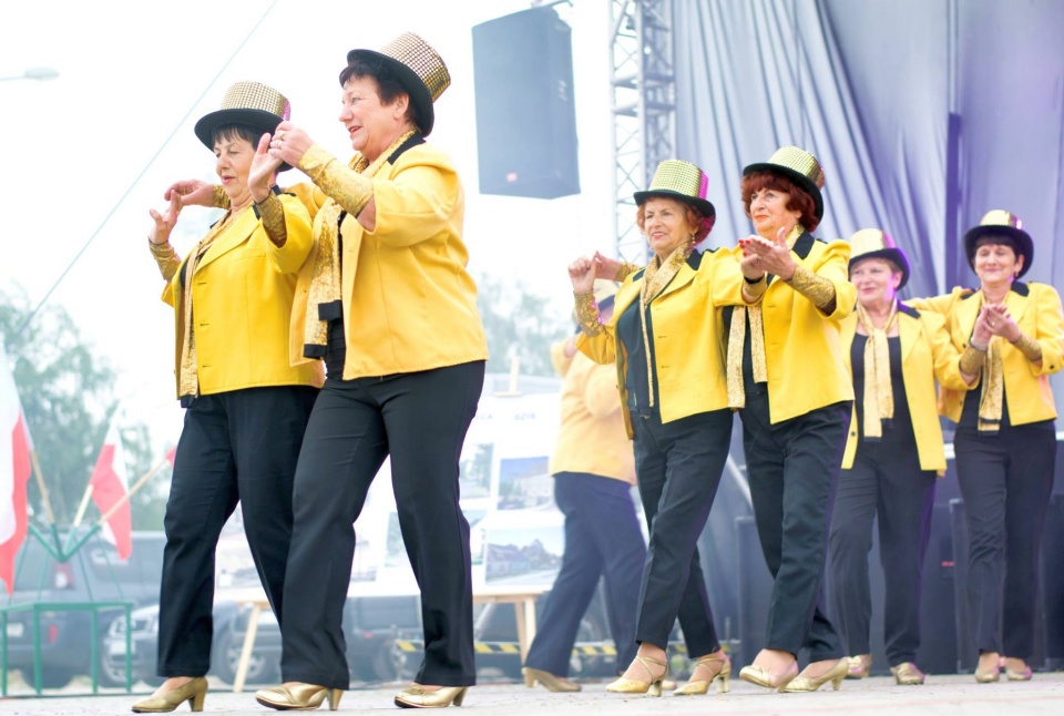 W międzyczasie na scenie zaprezentowały się dwa zespoły, które muzycznie i tanecznie wprowadziły widzów w nastrój zabawy. Z głośników poleciały utwory w wykonaniu kapeli „Dębniacy”, a po nich tańce ludowe zaprezentował zespół taneczny „Pasjonata”. Niejedno gardło zanuciło przyśpiewki, a noga poruszyła się w rytm melodii. Widać było, że seniorom z obu zespołów taniec i muzyka sprawiają przede wszystkim wiele radości. Razem z nimi na scenie bawili się wójt Robert Stolarski oraz szefowa GOK-u Małgorzata Gniewczyńska