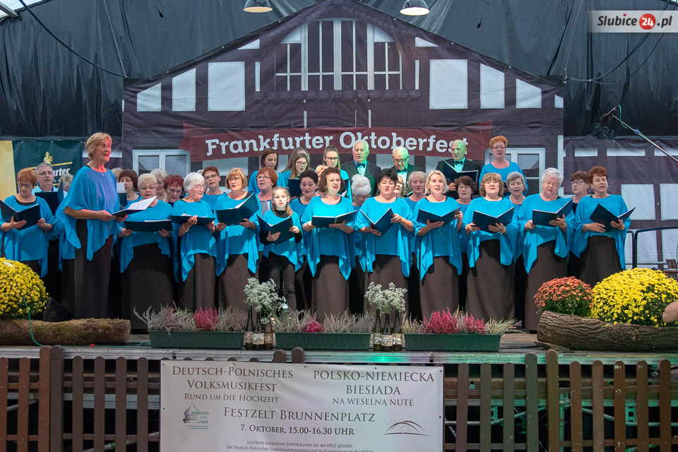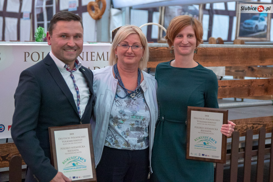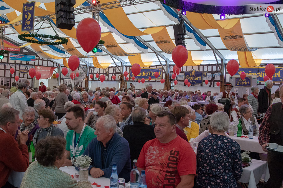 A wśród nich był również Mariusz Olejniczak, przewodniczący rady miejskiej w Słubicach, który wyraził zadowolenie, że spotykamy się podczas kolejnego projektu polsko-niemieckiego. - Impreza odbywa się pod namiotem, którego wystrój przypomina tradycyjne polskie sale weselne. Mam nadzieję, że utwory wykonywane przez artystów szybko porwą wszystkich do tańca – powiedział M. Olejniczak. I na pewno niejedna noga przytupywała do rytmu pod stołem!
