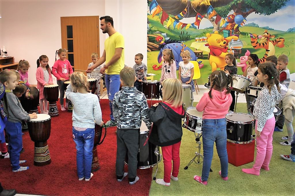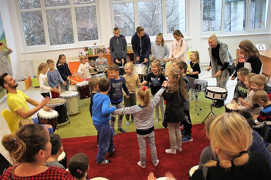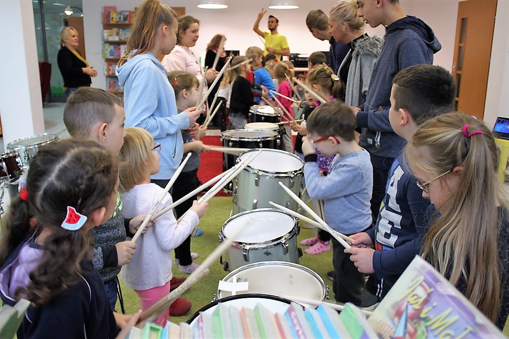 Bębny, shakery, talerze, dzwonki, zaklinacze deszczu – dzieci z Jarzębinki i Misia Uszatka i podopieczni ze Specjalnego Ośrodka Szkolno-Wychowawczego już wiedzą do czego służą! 20 listopada poznali się z nimi bliżej podczas warsztatów perkusyjnych w Bibliotece Publicznej Miasta i Gminy Słubice. Poprowadził je Kamil Karmelita, słubiczanin, absolwent Akademii Muzycznej w Poznaniu.