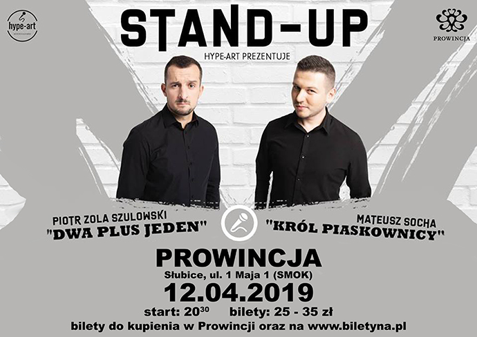Rzeczywistość nie musi być szara, bura i ponura. Swoimi żartami udowodnią to stand-uperzy Mateusz Socha i Piotr Zola Szulowski. Wystąpią na gościnnych deskach sceny Prowincji.