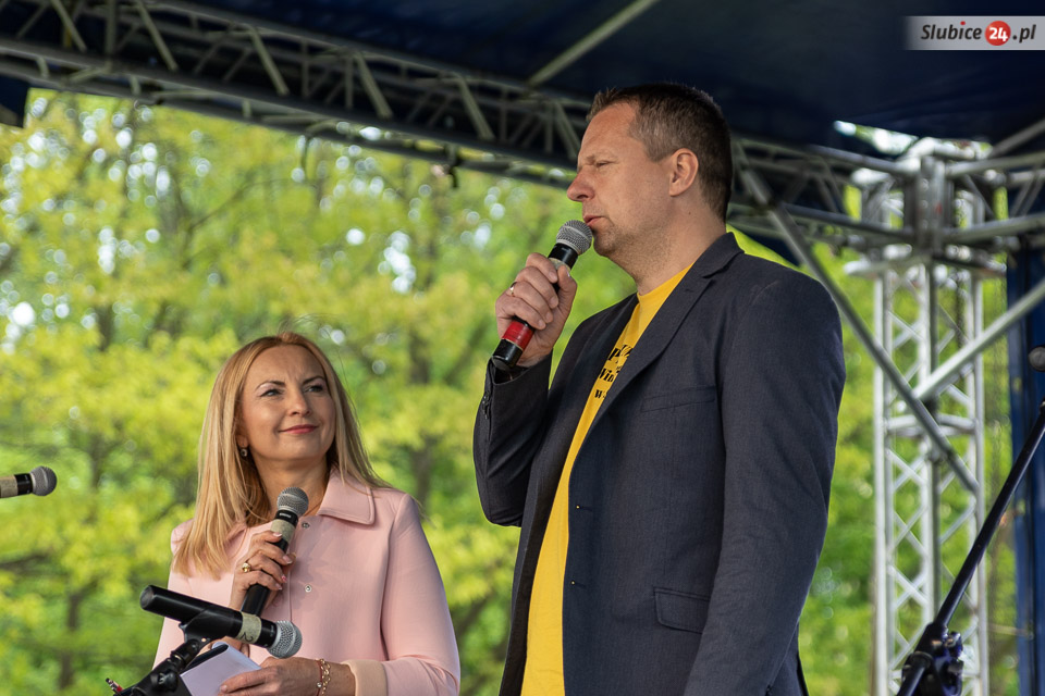Przybyłych na XX Festyn Majowy powitali Małgorzata Pasternak ze Słubickiego Miejskiego Ośrodka Kultury i Przemysław Szewieliński, szef Hospicjum Domowego św. Wincentego a’Paulo. Oprócz wymienionych instytucji, organizatorem tegorocznego festynu była jeszcze parafia pw. Najświętszej Maryi Panny Królowej Polski.