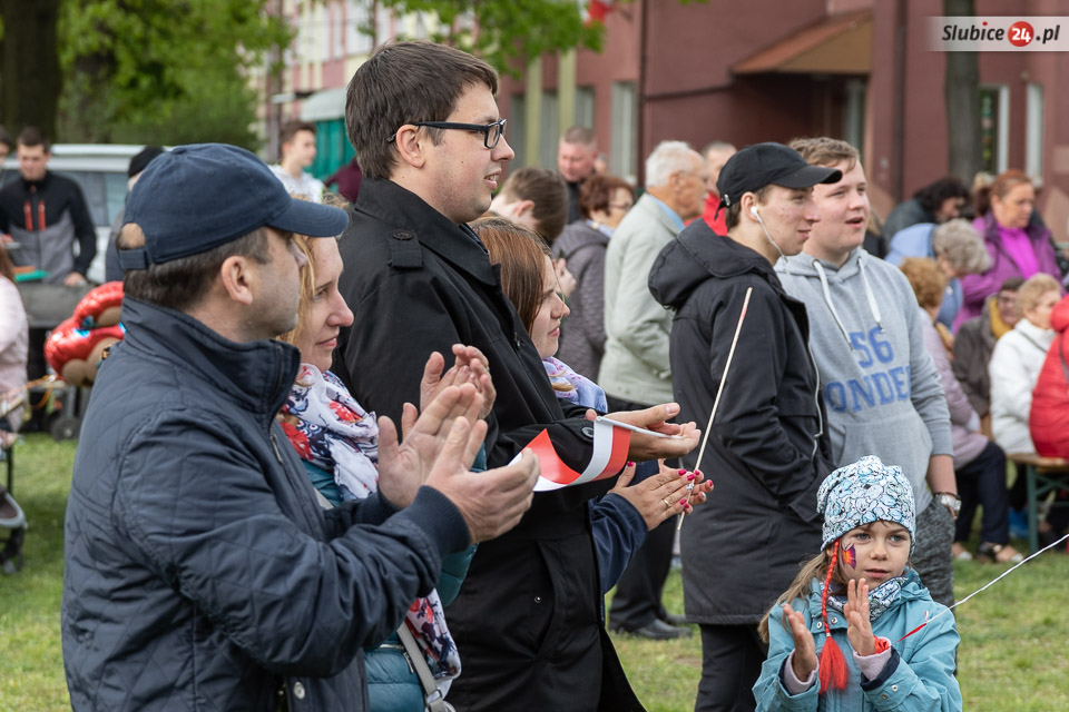 Ze sceny przybyłych powitał również burmistrz Mariusz Olejniczak. – Mamy dziś piękny jubileusz, 20 lat to szmat czasu. Bardzo się cieszę, że jesteśmy tu po raz kolejny i mam nadzieję, że będą następne takie majowe festyny, choć na pewno zmieni się miejsce – mówił M. Olejniczak.