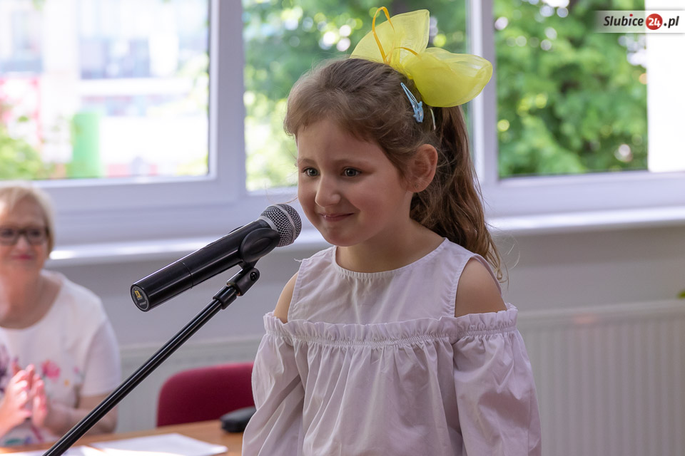 A główne trofeum powędrowały do Zofii Szkarłat z „Jarzębinki”, która zaprezentowała wiersz pt. „Dzięcioł i sowa”. Jury, które tworzyły: Anna Adamowicz ze SMOK-a, radna Ewa Chustecka oraz Renata Bac-Bohuszko ze słubickiej biblioteki, zdecydowało również o przyznaniu 6 wyróżnień. Otrzymali je: Maja Hubko, Kalina Makara, Aleksander Kubiak, Agata Szkolna, Fabian Zawadzki i Amelia Marciniak. Każdy z uczestników otrzymał dyplom i upominek.