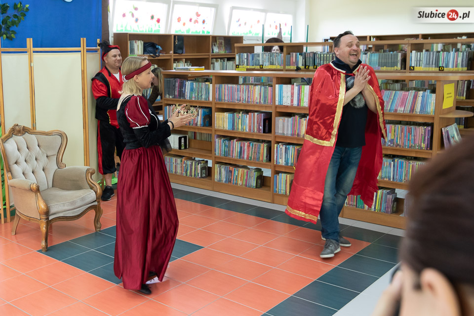 Swoje talenty prezentowały nie tylko dzieci, ale także… rodzice. Grupa rodziców z przedszkola „Jarzębinka”, pod kierunkiem nauczycielki Marioli Jasiniak przygotowała przedstawienie. Była to bajka z morałem, o królu Ciapciaku, który był leniwy i głupiutki, nie chciał się uczyć ani czytać, tylko całymi dniami grał na tablecie. Wciąż powtarzał, że nic mu się nie chce. W zrozumieniu tego, że warto czytać książki i uczyć się pomogły mu spotkania z wiedźmą Mariettą, która rzuciła na niego zły czas i dobrą wróżką. W przedstawieniu żywiołowy udział brały dzieci z widowni.