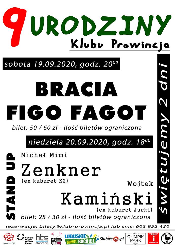 Klub Prowincja zaprasza na kolejną imprezę po okresie lockdownu, tym razem będzie obchodzić 9. urodziny. Gwiazdą wieczoru będą Bracia Figo Fagot.