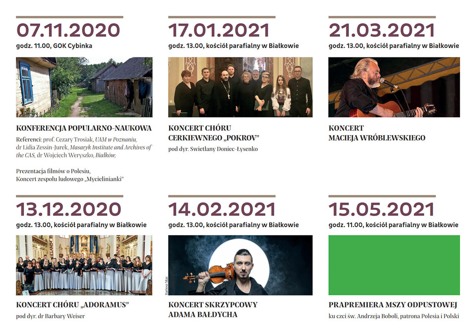 - 7 listopada 2020, godz. 11.00, Gminny Ośrodek Kultury w Cybince – konferencja popularno-naukowa. Referenci: prof. Cezary Trosiak - UAM w Poznaniu, dr Lidia Zessin-Jurek - Masaryk Institute and Archives of the CAS, dr Wojciech Weryszko - Białków. Prezentacja filmów o Polesiu, koncert zespołu ludowego „Mycielinianki”.