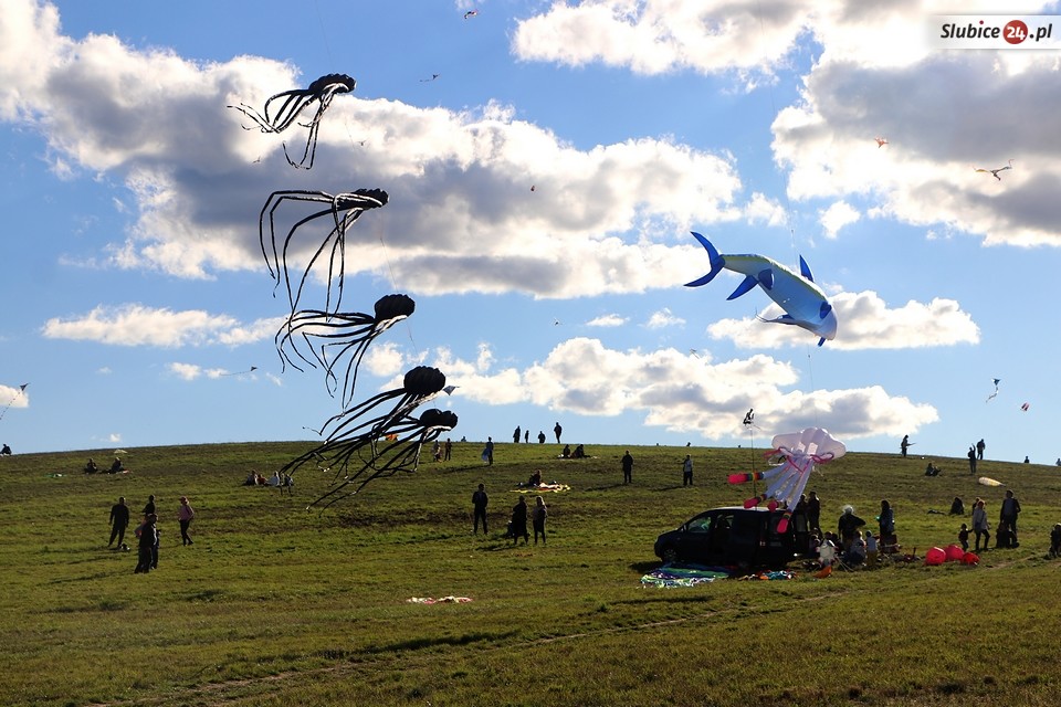 Tak było i podczas 24. edycji imprezy. Latawców fruwało na niebie naprawdę całe mnóstwo, od prostych konstrukcji, po bardziej wymyśle projekty przypominające czasem małe dzieła sztuki. Kto nie miał latawca, mógł go nabyć na miejscu. Wszystko odbywało się w rodzinnej, piknikowej atmosferze.