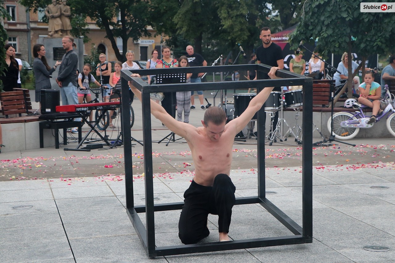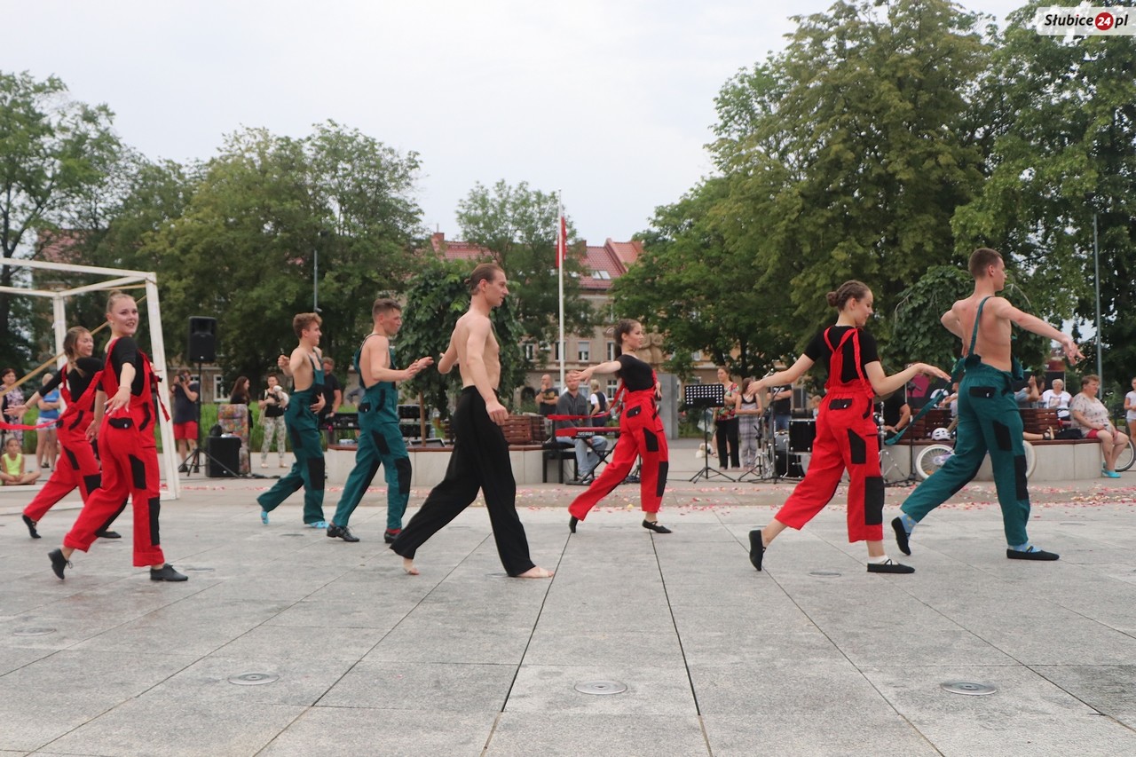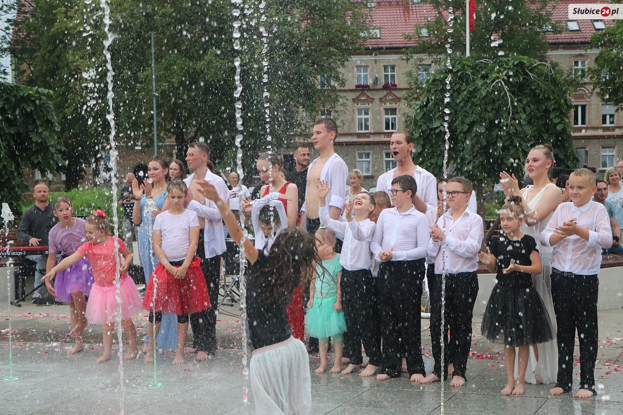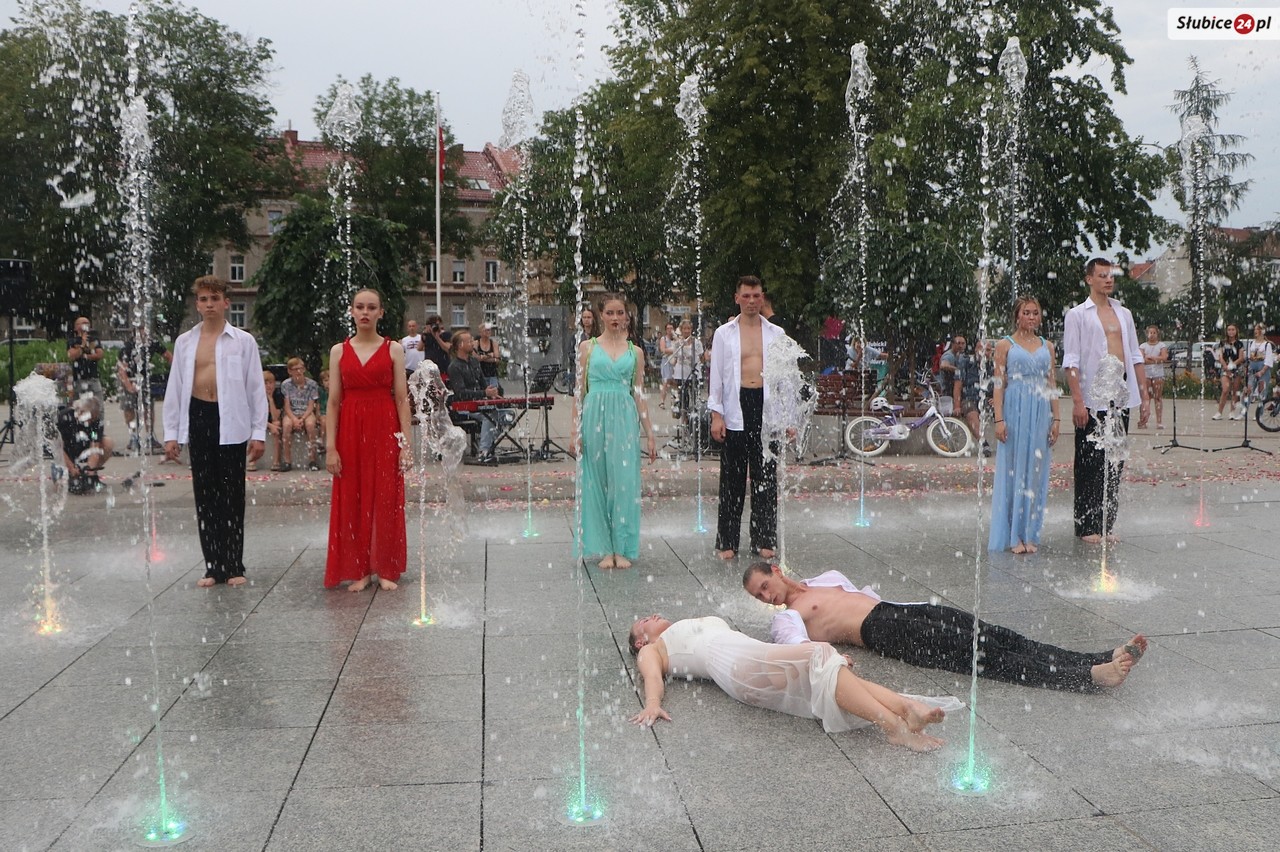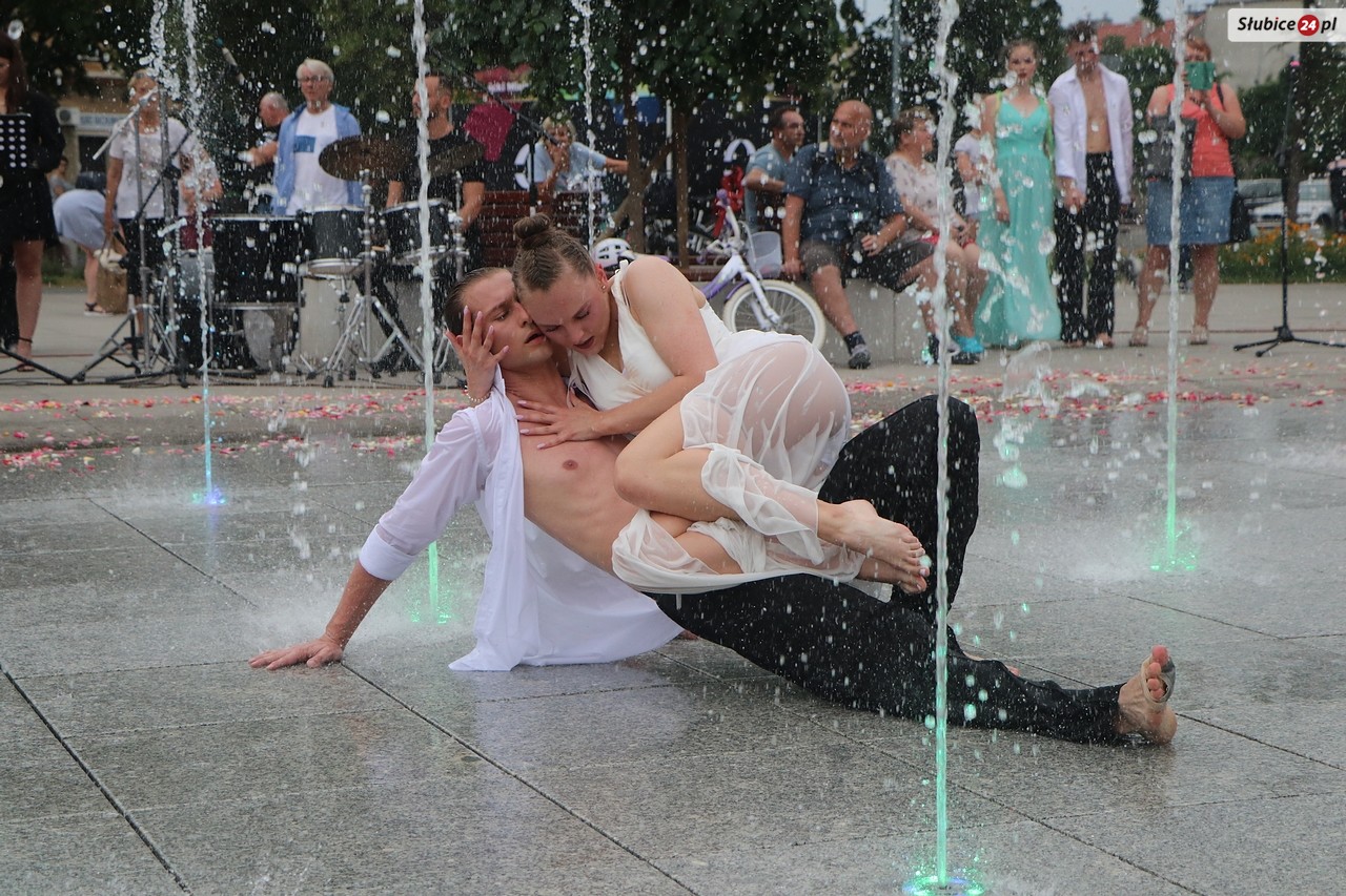 Plac Bohaterów nie wybrano przypadkiem na miejsce widowiska, bo znajdująca się na nim fontanna pełniła ważną rolę scenograficzną. Nieodzownym elementem była także muzyka na żywo - hipnotyzujące partie perkusji w wykonaniu Kamila Karmelity czy nastrojowe dźwięki pianina, które wyczarował Piotr Tamborski.