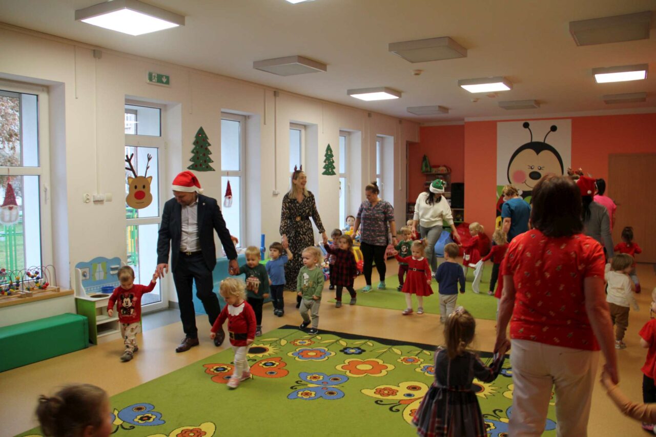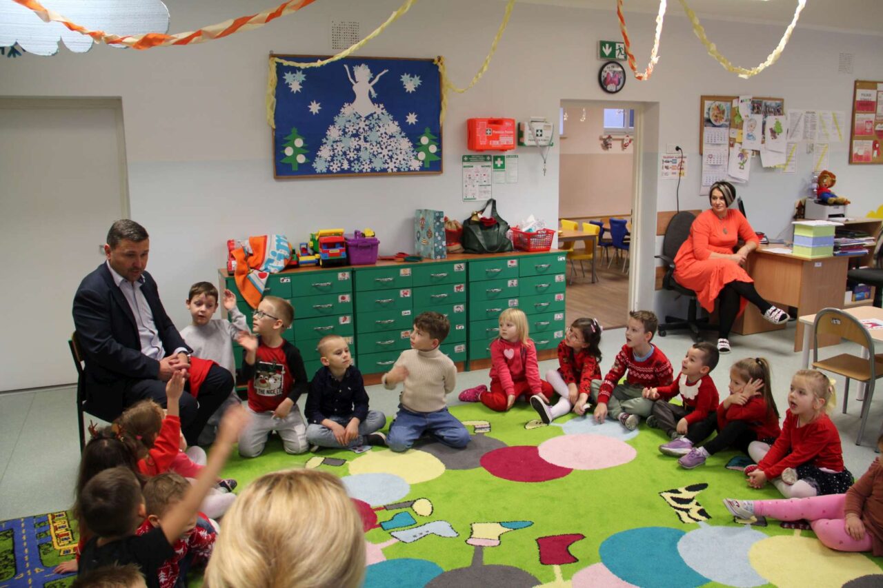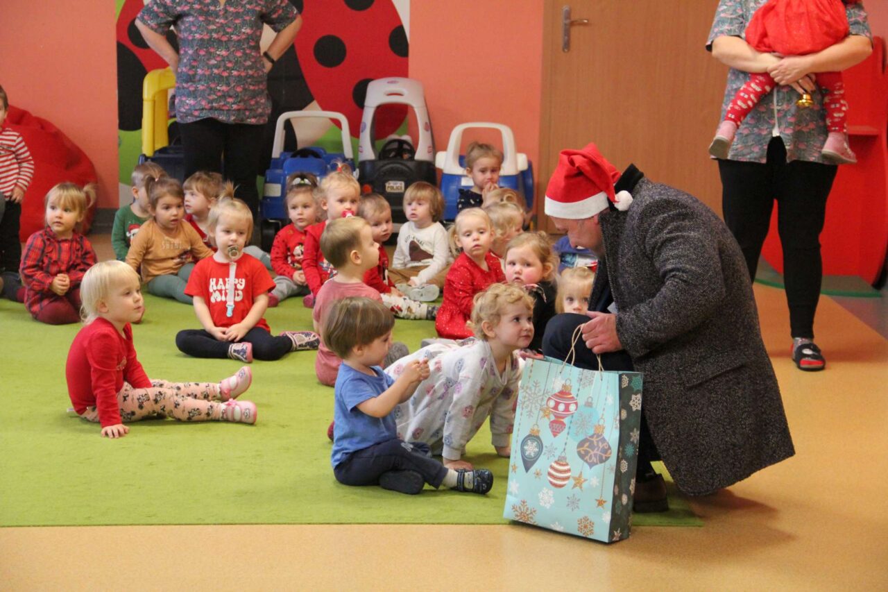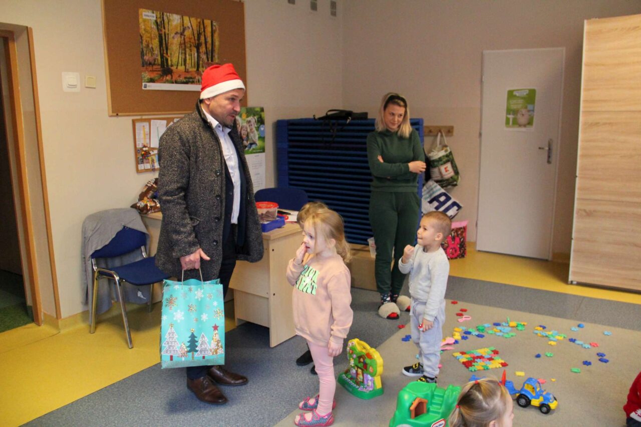 Maluchy otrzymały słodkie upominki, a burmistrz i jego zastępczyni mieli ważną misję wspierania św. Mikołaja. Pomagali mu rozdawać prezenty, a gdy trzeba było to nawet go zastępowali. W zamian dostali od dzieci mnóstwo uśmiechów. Była też okazja do rozmowy i krótkiej zabawy.