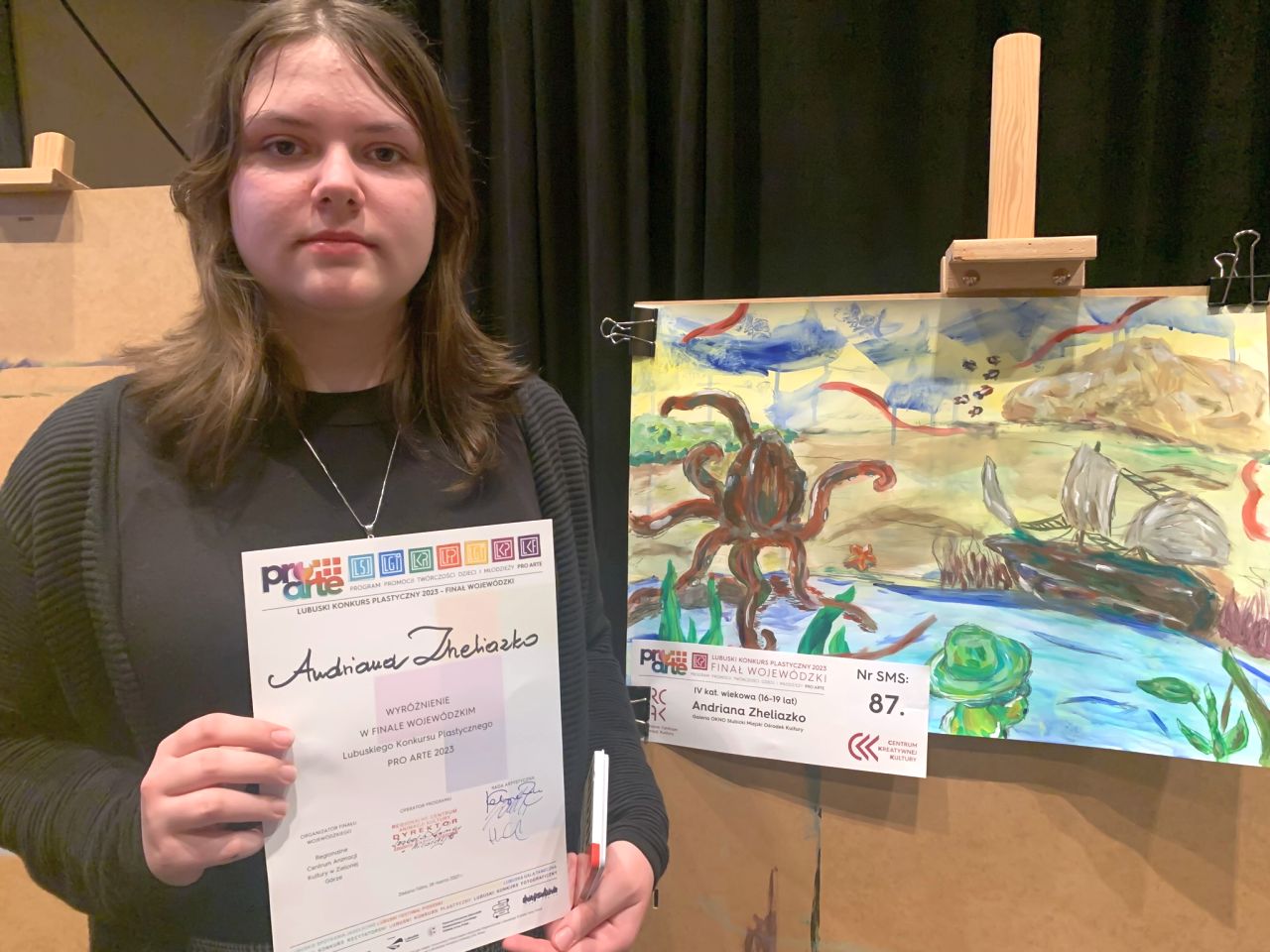 Anna Boberska (grupa wiekowa 16-19 lat) zajęła pierwsze miejsce, a Oskar Raczak (7-9) i Andriana Zheliazko (16-19) otrzymali wyróżnienia. Cała trójka rozwija swoje plastyczne talenty w Galerii Okno działającej przy Słubickim Miejskim Ośrodku Kultury.