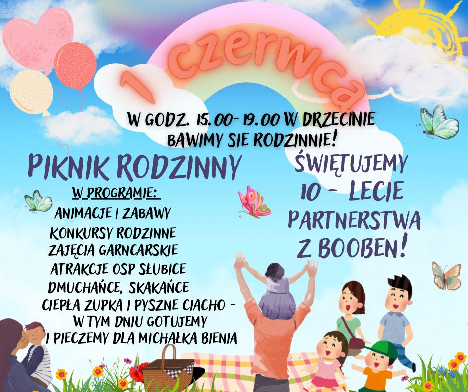 1 czerwca Drzecin zaprasza na imprezę z okazji Dnia Dziecka. Podczas pikniku rodzinnego będzie okazja do świętowania 10-lecia partnerstwa z niemiecką miejscowością Booßen.