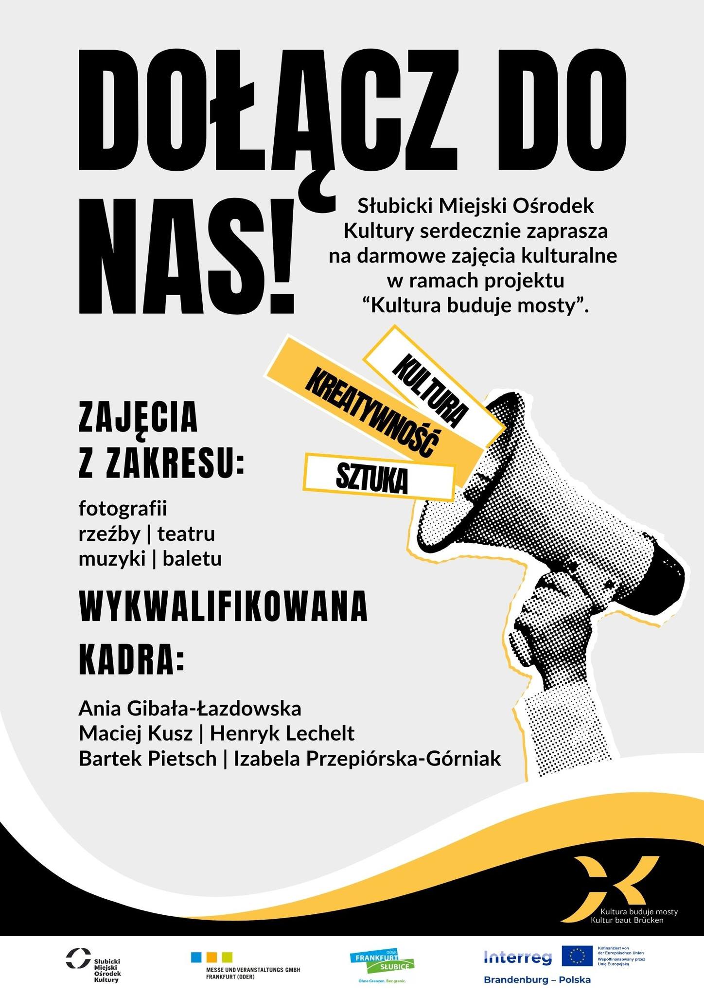 Słubicki Miejski Ośrodek Kultury i Messe und Veranstaltungs z Frankfurtu nad Odrą zapraszają do wzięcia udziału w nowym projekcie pt. „Kultura buduje mosty”. W ramach projektu będą organizowane rozmaite zajęcia, warsztaty i występy.