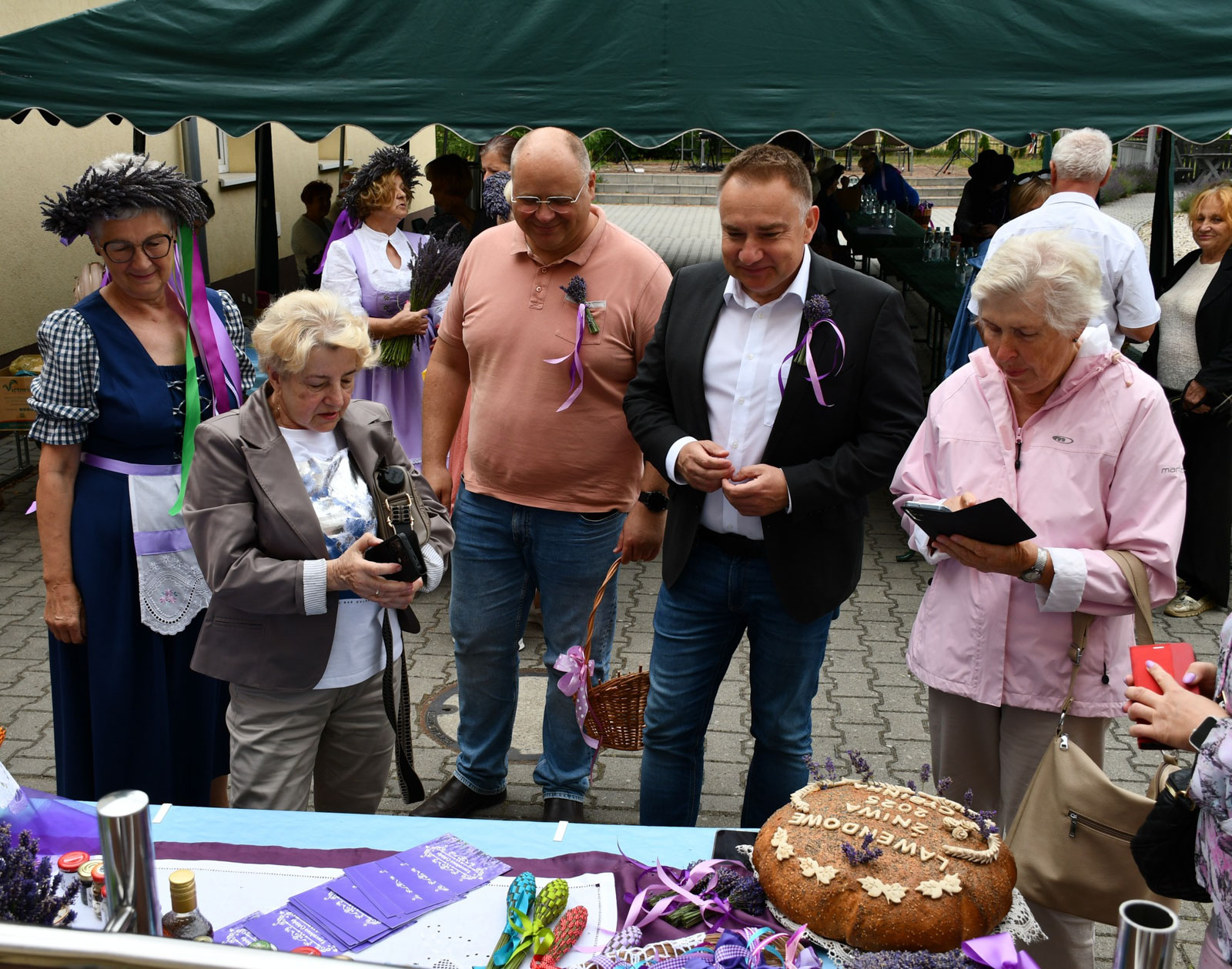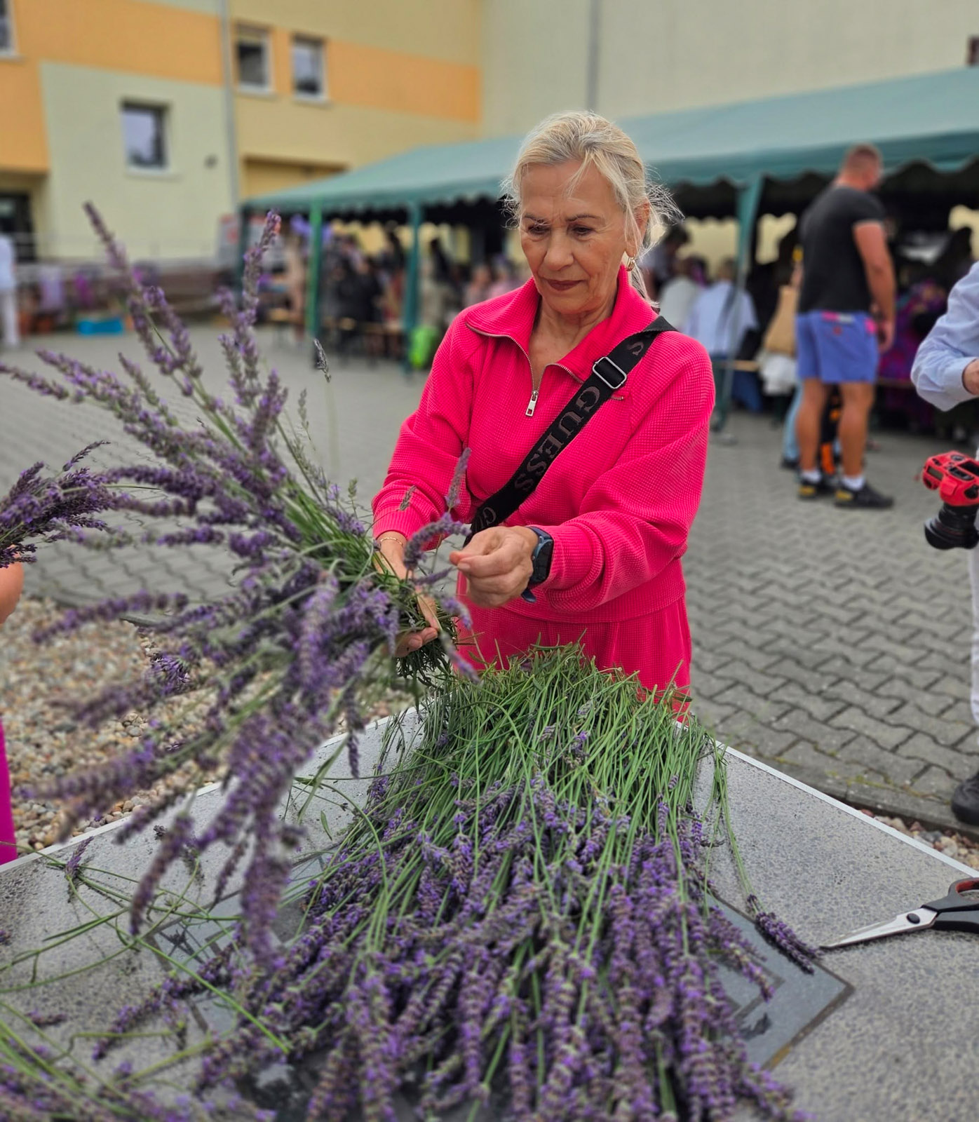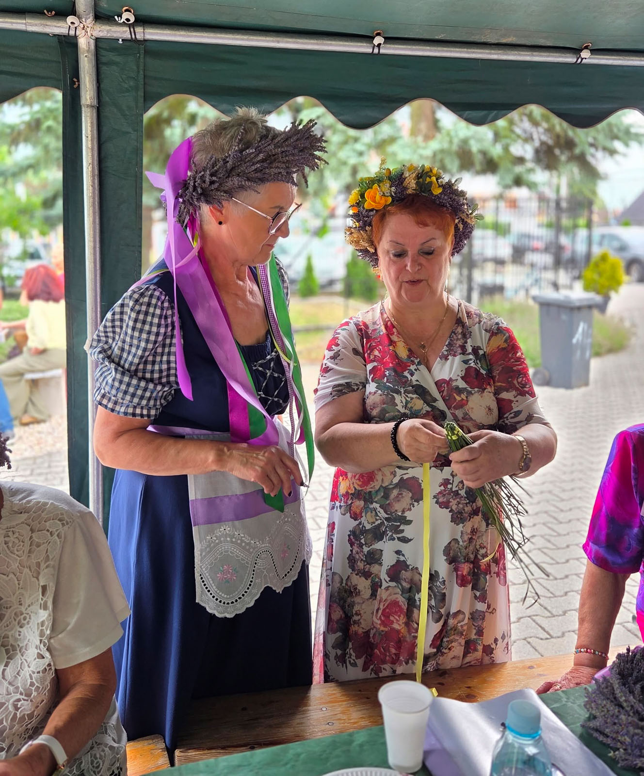 Po żniwach uczestnicy z koszami pełnymi kwiatów wrócili na plac przy MGOK, zamieniając go w pachnące miejsce pełne warsztatów, rozmów i muzyki. Uczestnicy tworzyli plecionki, degustowali potrawy z dodatkiem lawendy i korzystali z okazji do wspólnej zabawy przy występach lokalnych artystów.