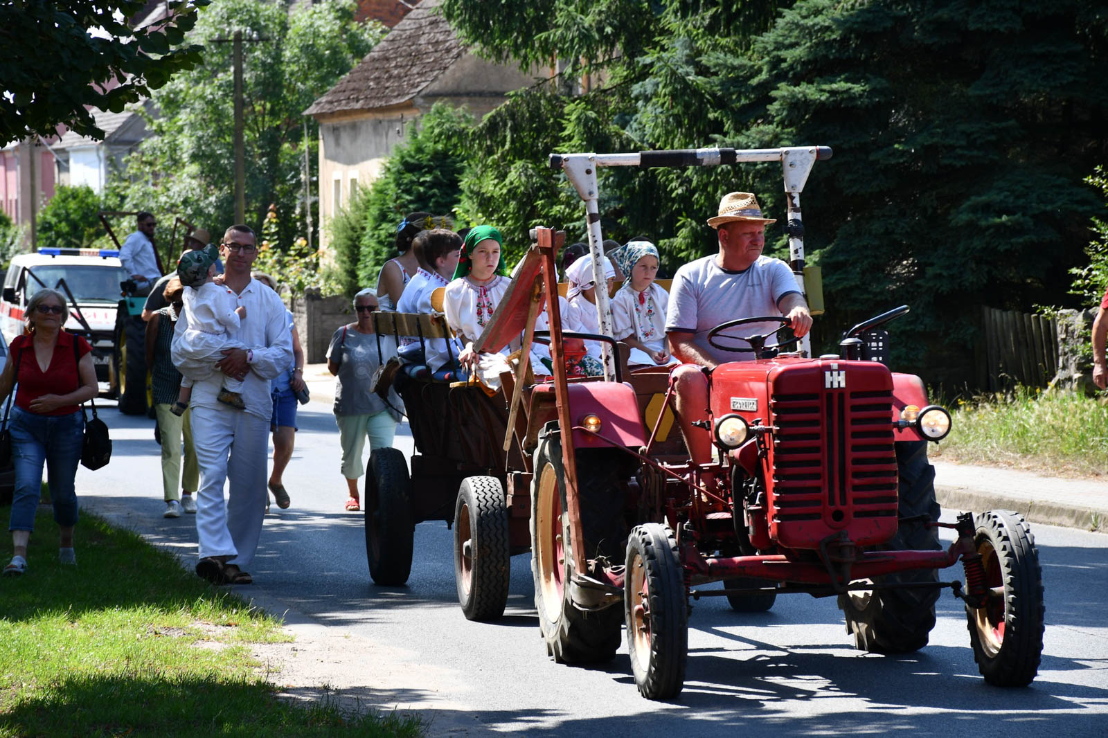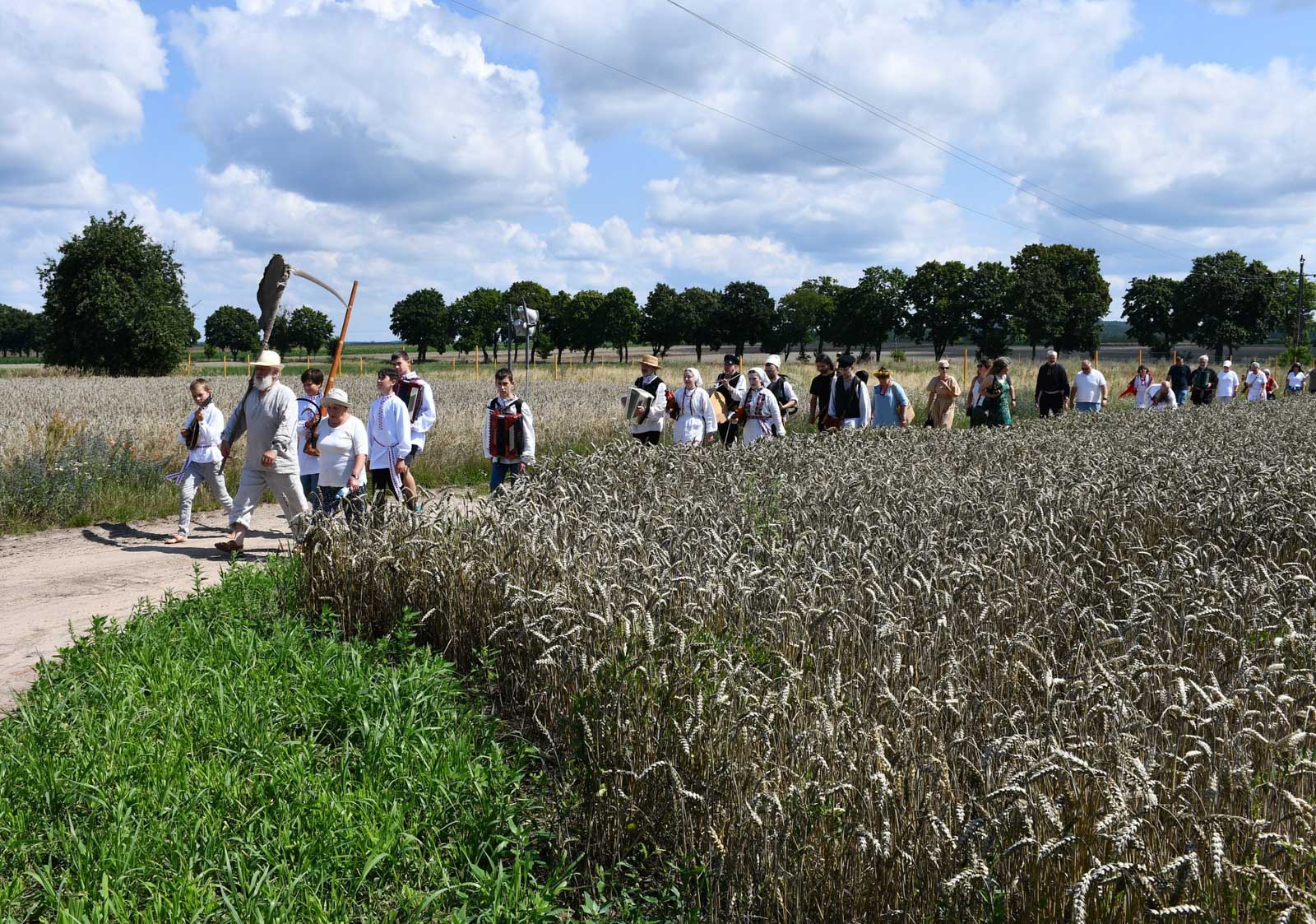 Impreza rozpoczęła się przemarszem korowodu na miejsce żniw. Tam odbyło się poświęcenie pola i żniwiarzy przez ks. Daniela Gepperta, pokaz tradycyjnych prac żniwnych oraz wspólne śpiewy i poczęstunek. O dawnych zwyczajach opowiadał Eugeniusz Niparko z Towarzystwa Miłośników Polesia i Białkowa, a prezes stowarzyszenia Wojciech Weryszko przygrywał na akordeonie, akompaniując zespołom ludowym.