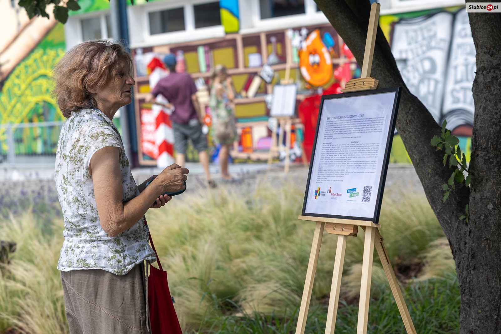 Piknik był także okazją do oficjalnego odsłonięcia muralu na ścianie biblioteki. Dzieło powstało w ramach projektu „Common Ground” i zostało stworzone przez młodych mieszkańców Dwumiasta wspólnie z międzynarodową grupą artystów. Umieszczony na muralu cytat z wiersza „Psalm” Wisławy Szymborskiej przypominał o idei otwartości i przekraczania granic. Więcej o procesie powstania muralu pisaliśmy w naszym wcześniejszym materiale – TUTAJ.