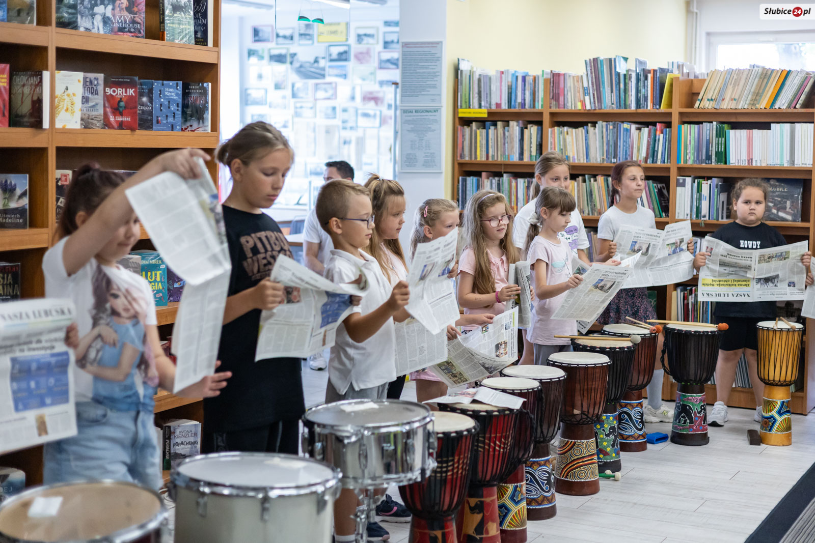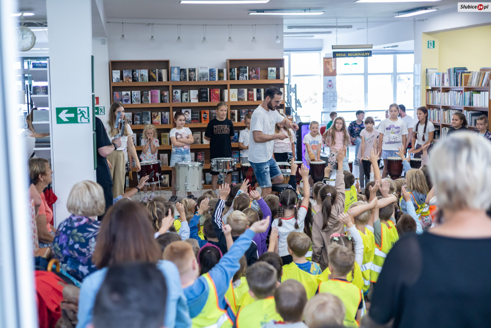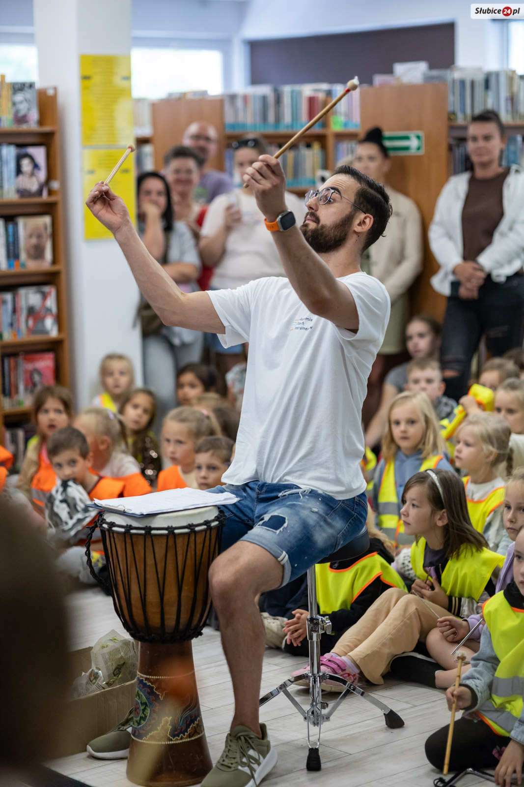 Choć kapryśna pogoda pokrzyżowała plany i przeniosła koncert z ogrodu do wnętrza biblioteki, nie odebrało to energii uczestnikom warsztatów perkusyjnych „Rytmiczne Spotkanie Kulturowe”. Młodzi muzycy zagrali dla mieszkańców Słubic, pokazując, czego nauczyli się podczas wspólnych ćwiczeń z Akademią Trzech Instrumentów.