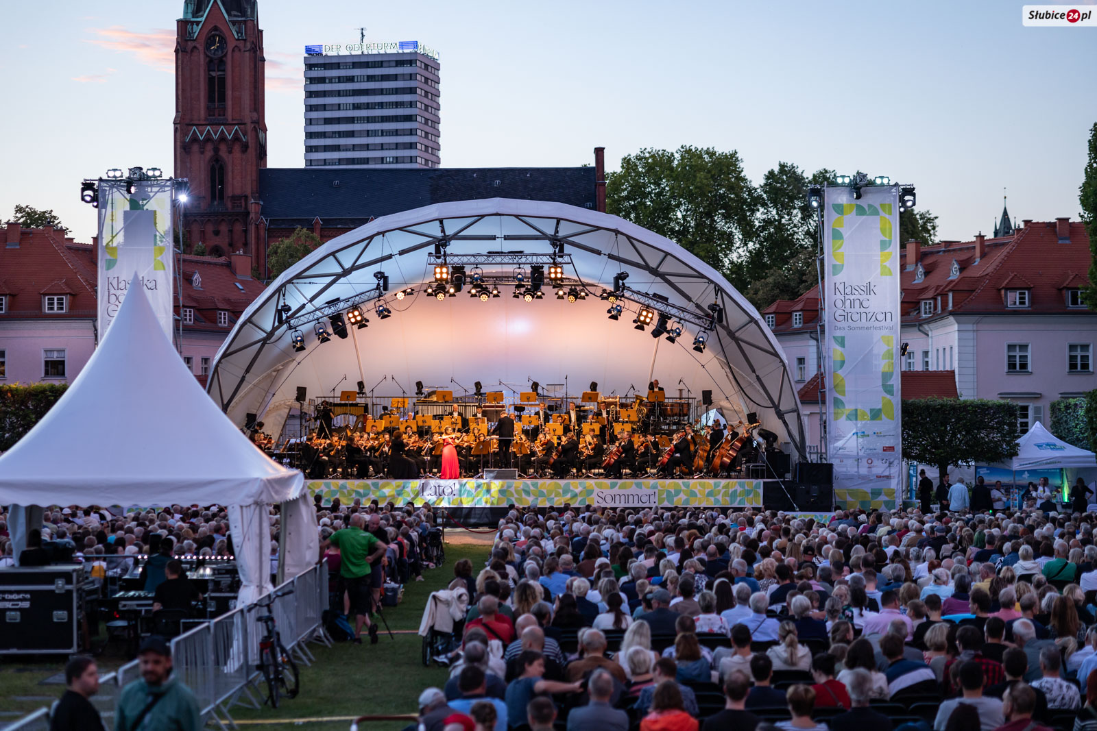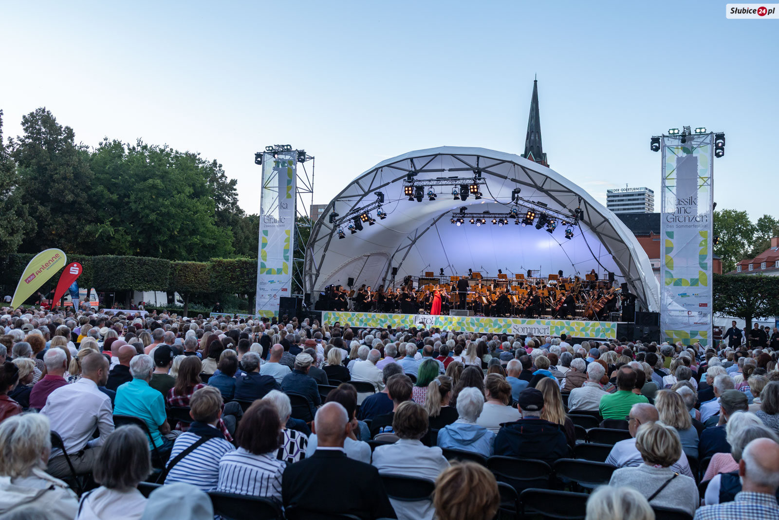 Park Am Anger we Frankfurcie nad Odrą stał się 30 sierpnia miejscem spotkania mieszkańców Słubic i Frankfurtu. Tłumy słuchaczy przyszły na koncert finałowy festiwalu „Klasyka bez granic”, w którym orkiestra pod batutą Howarda Griffithsa zabrała publiczność w podróż przez muzykę romantyczną i filmową.